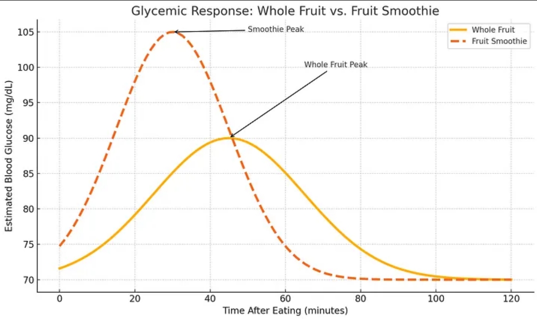 奶昔比整只水果更容易导致血糖快速、剧烈地飙升——哪怕用料完全相同——因为搅拌破坏了纤维结构,加速了葡萄糖的吸收。