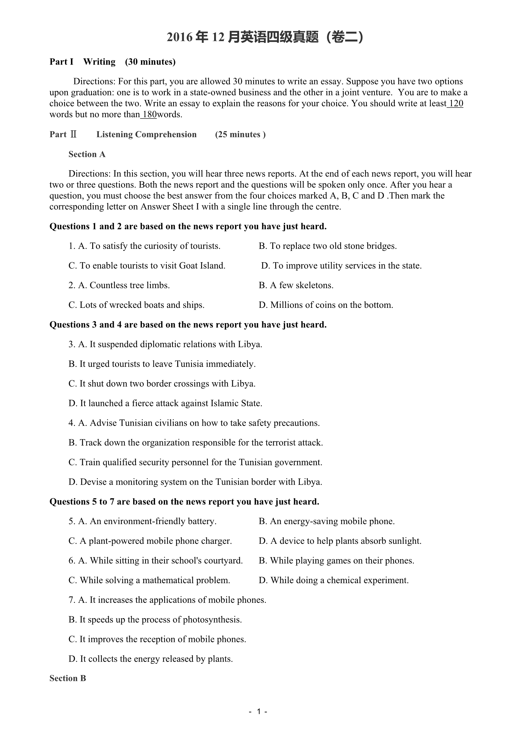 2016年12月大学英语四级真题(第2套)