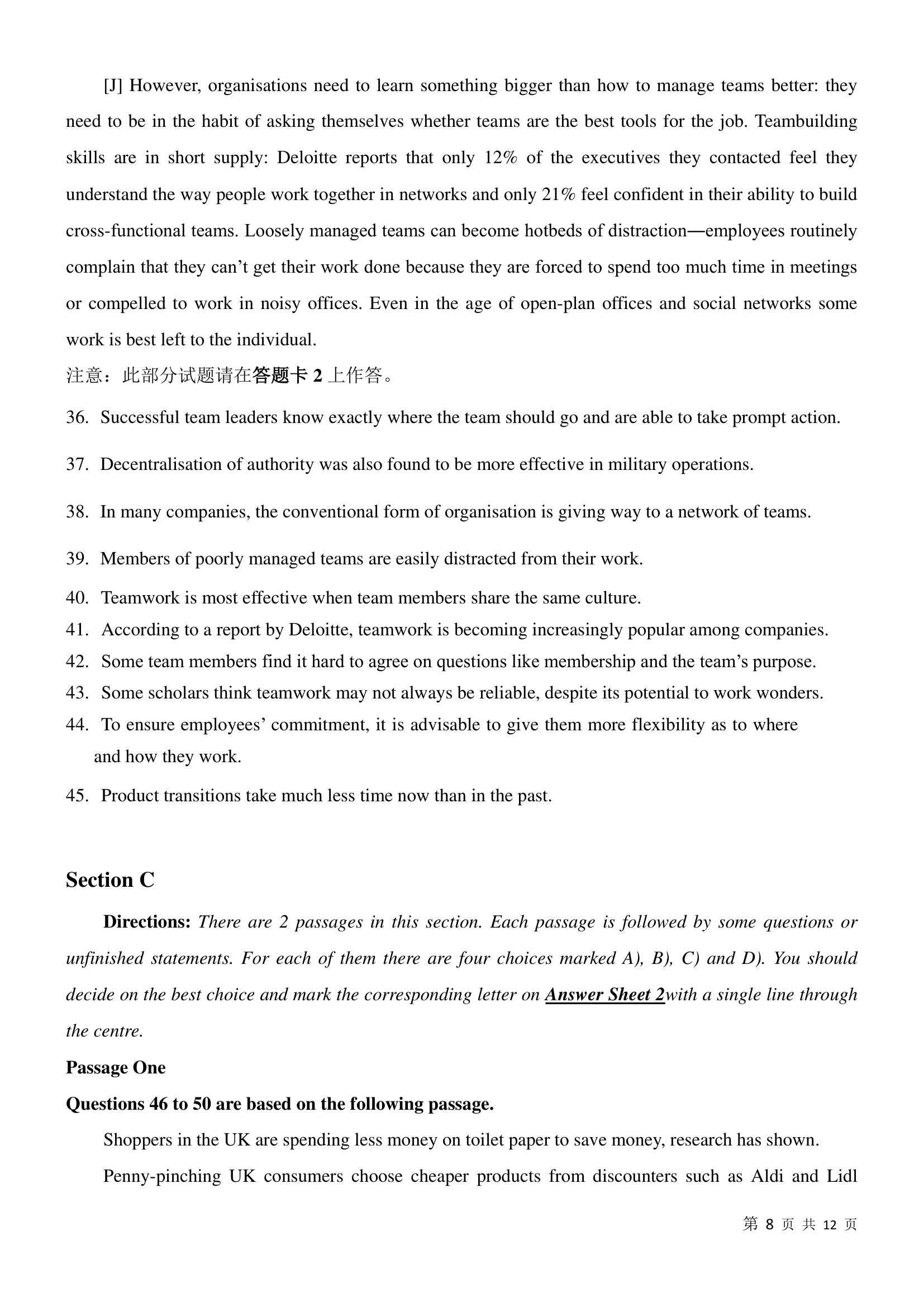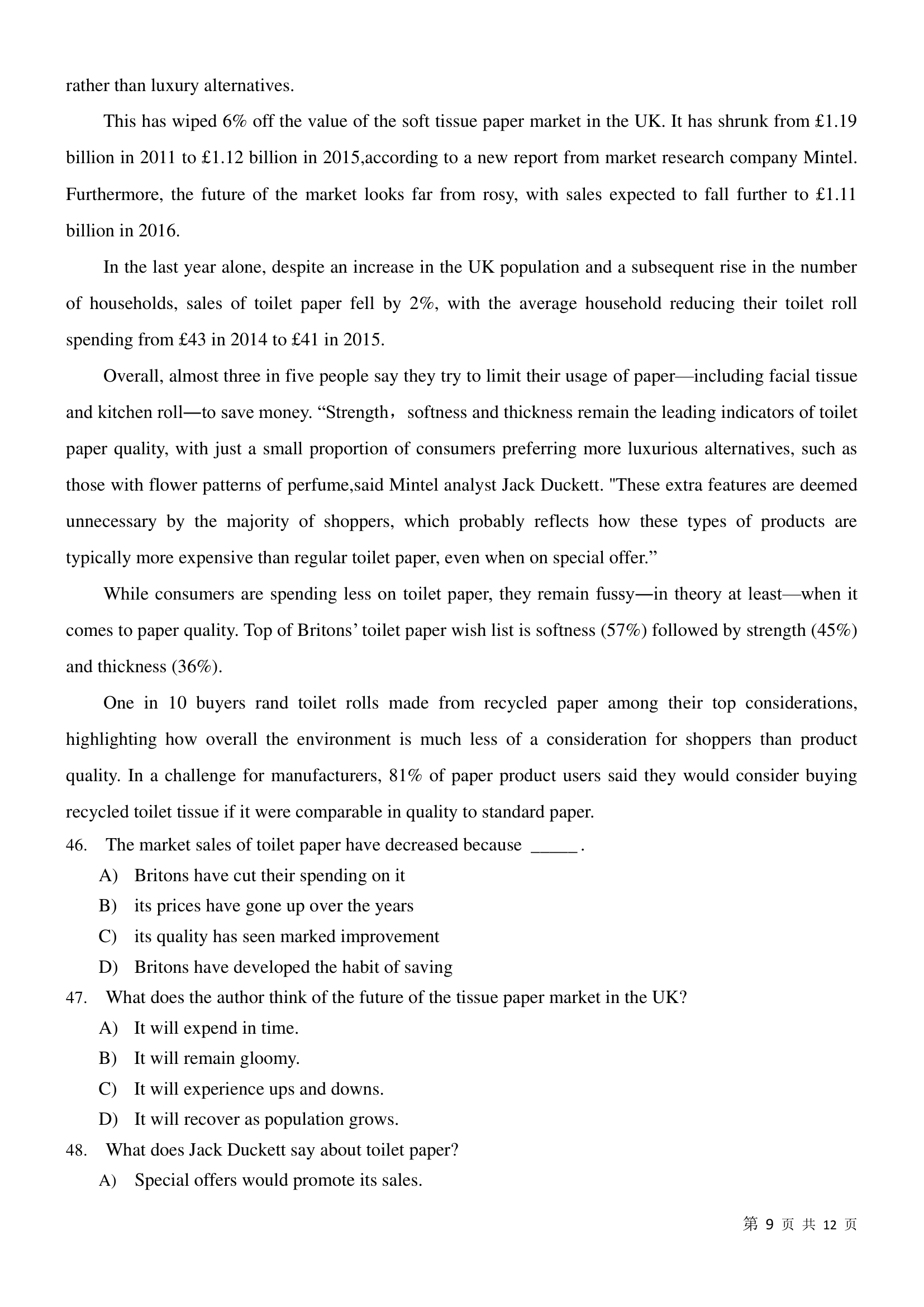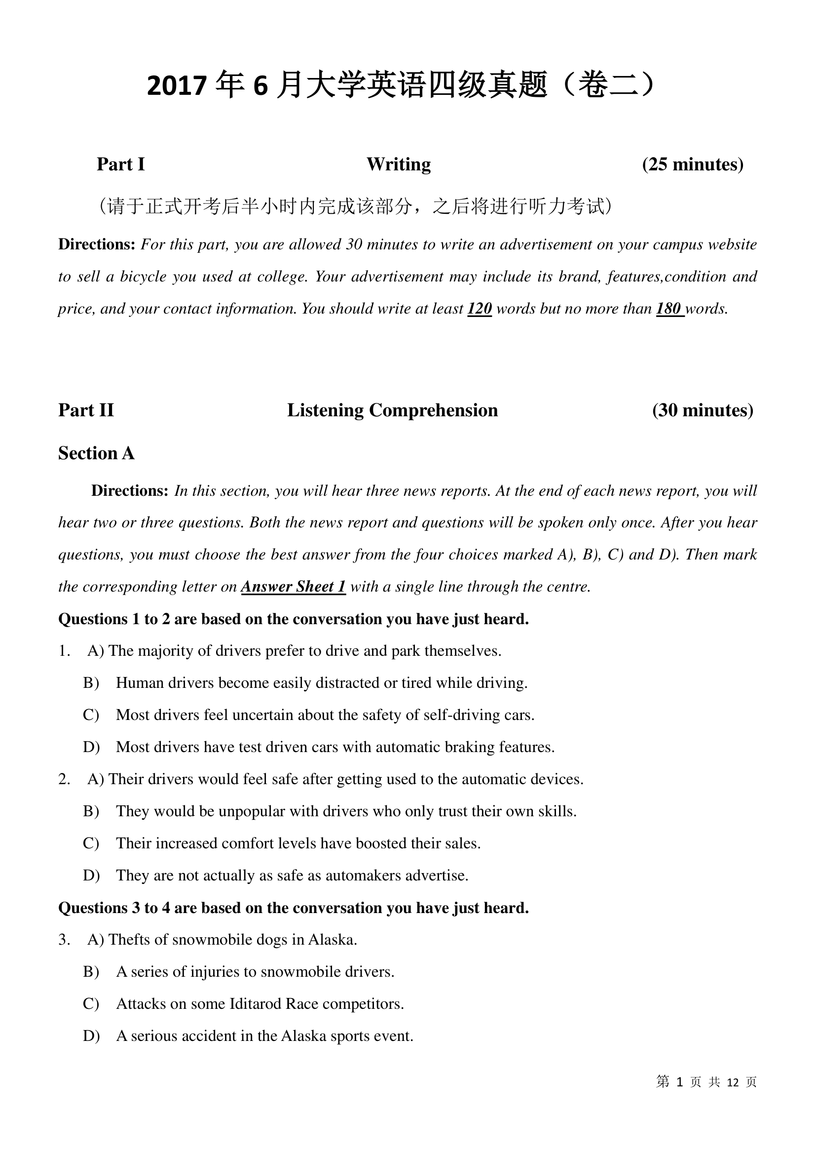 2017年6月大学英语四级真题(卷二)
