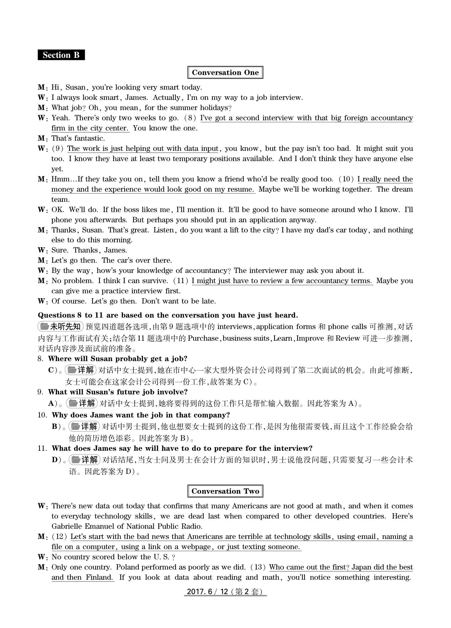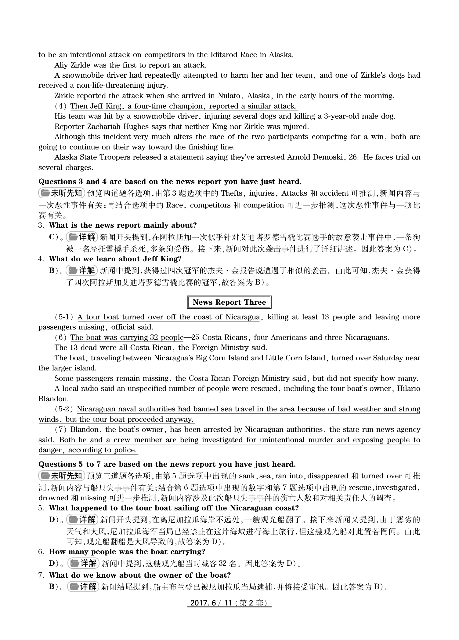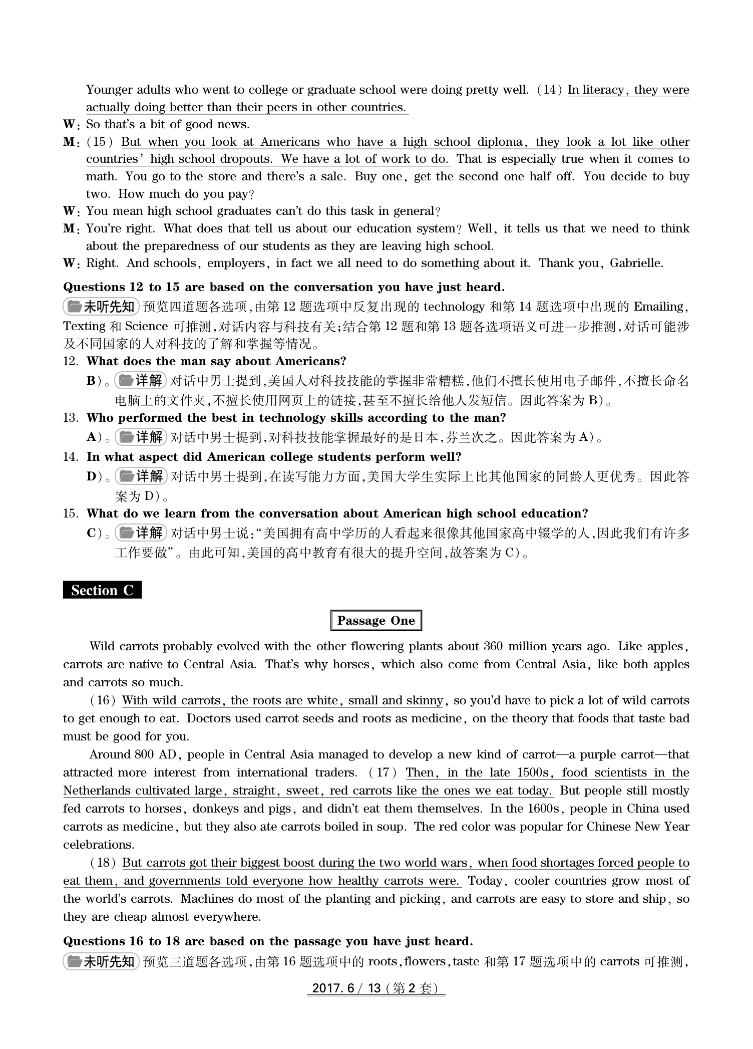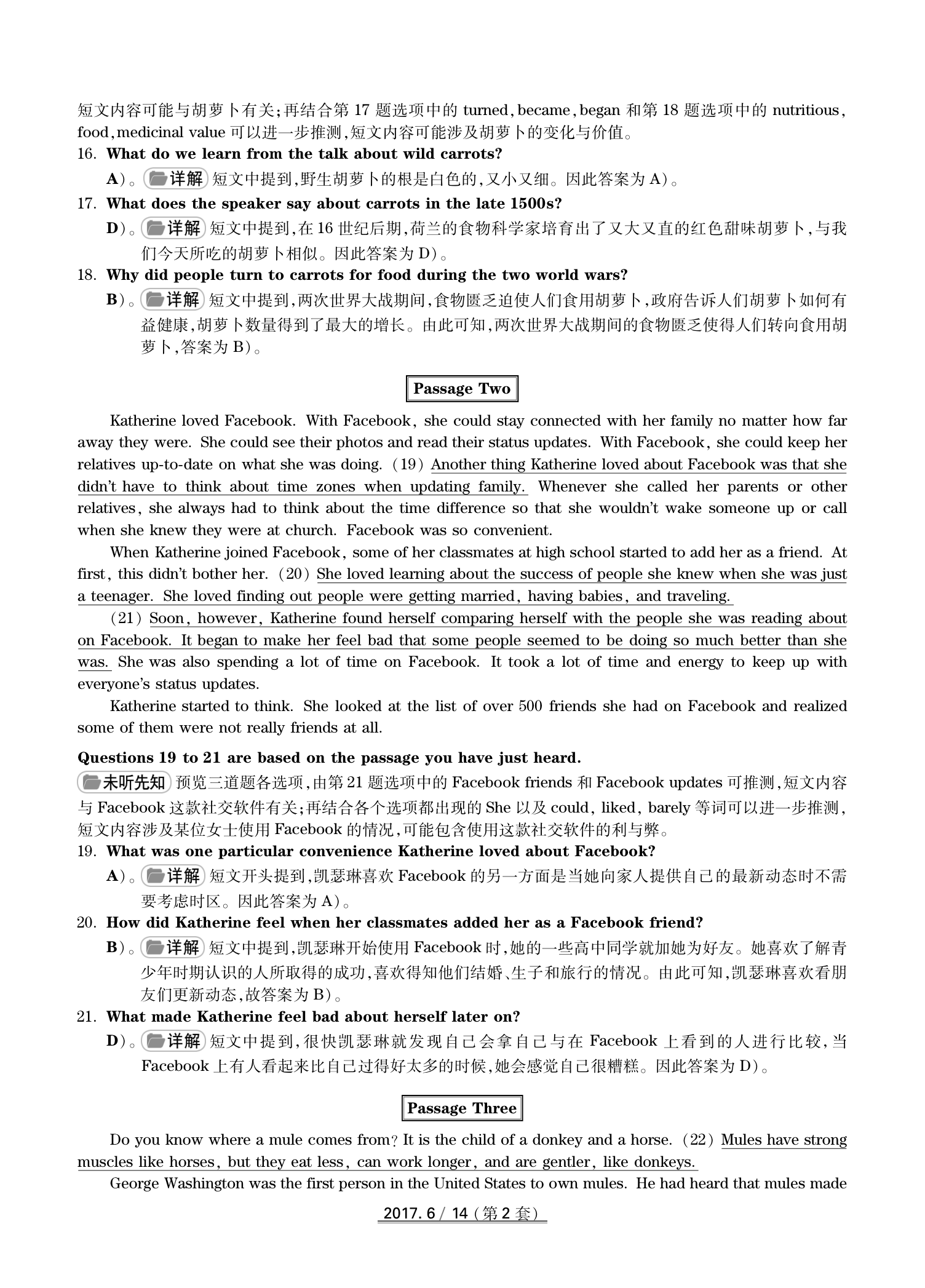 2017年6月英语四级真题(卷二)答案解析