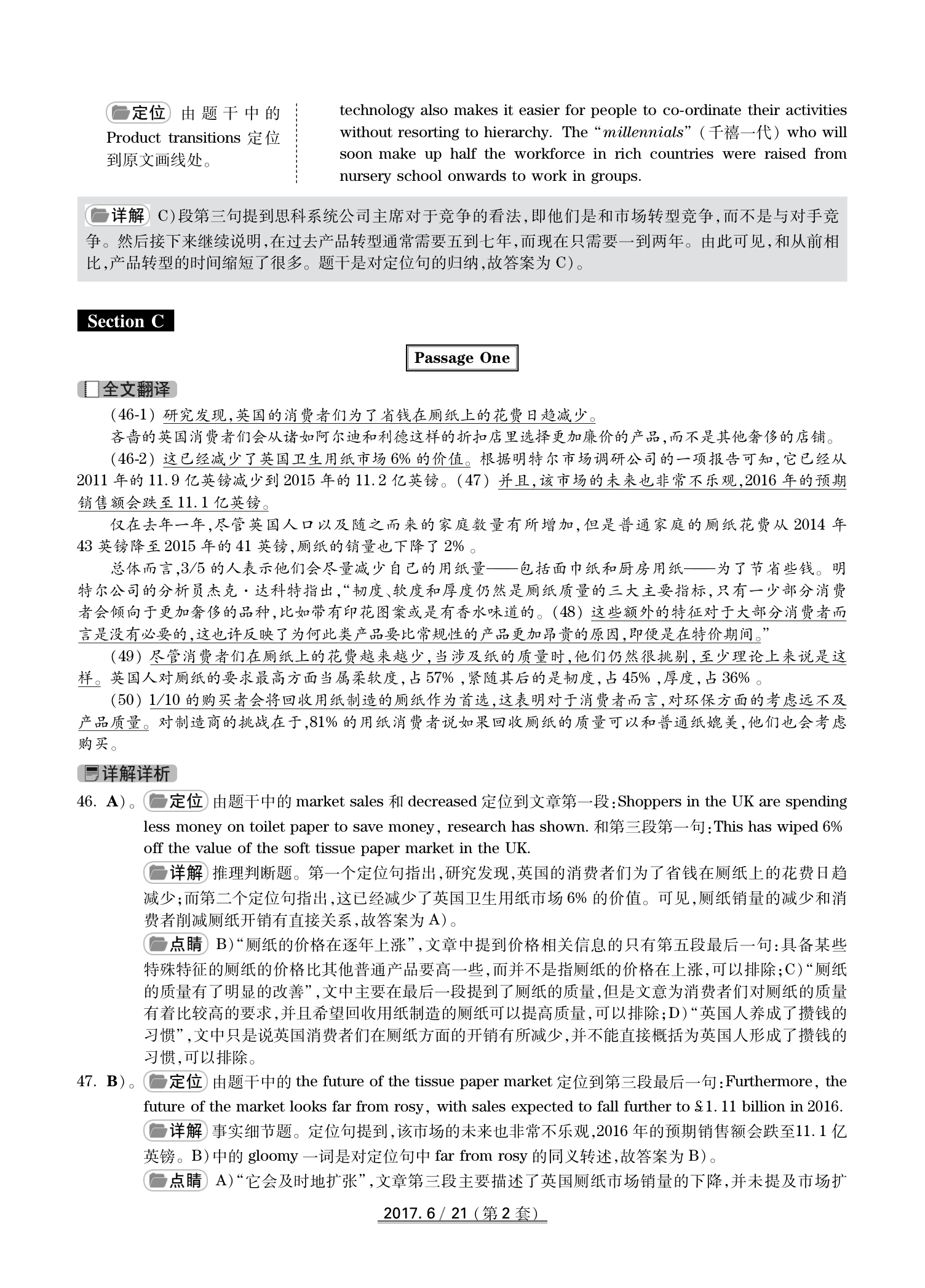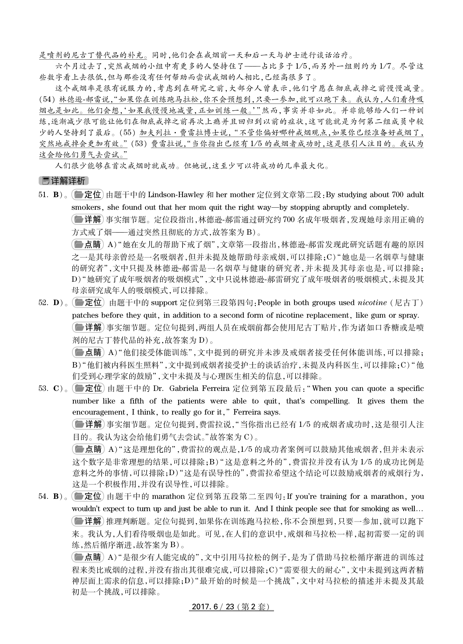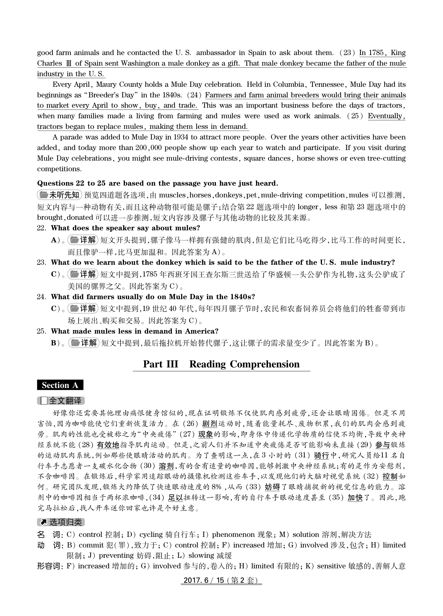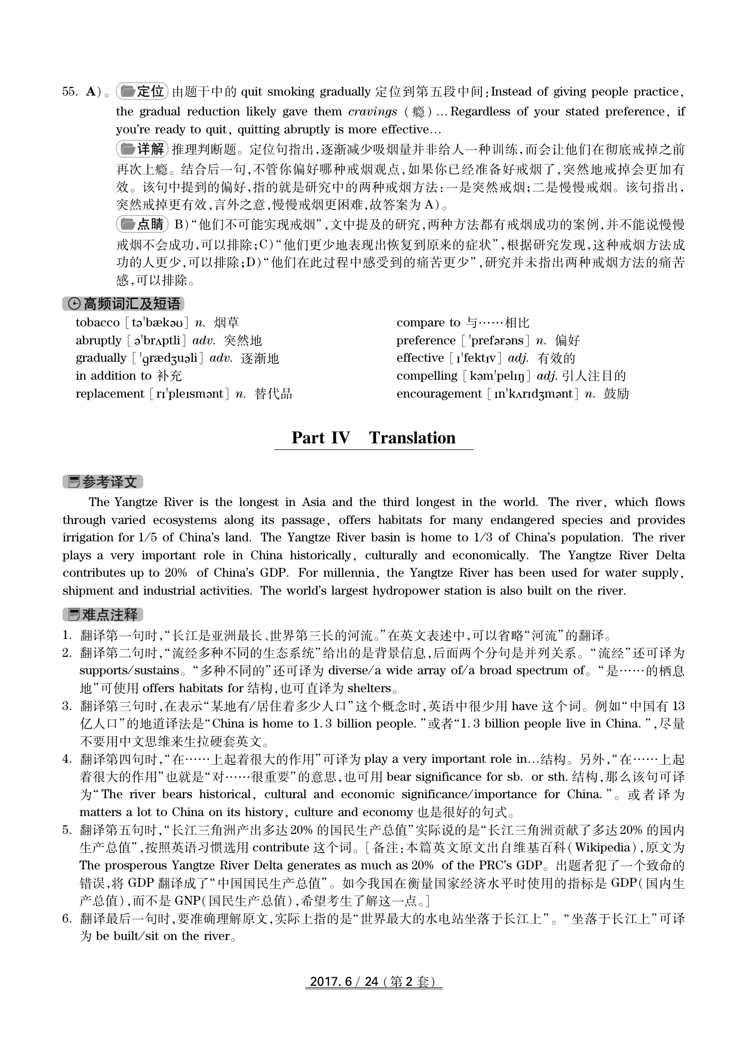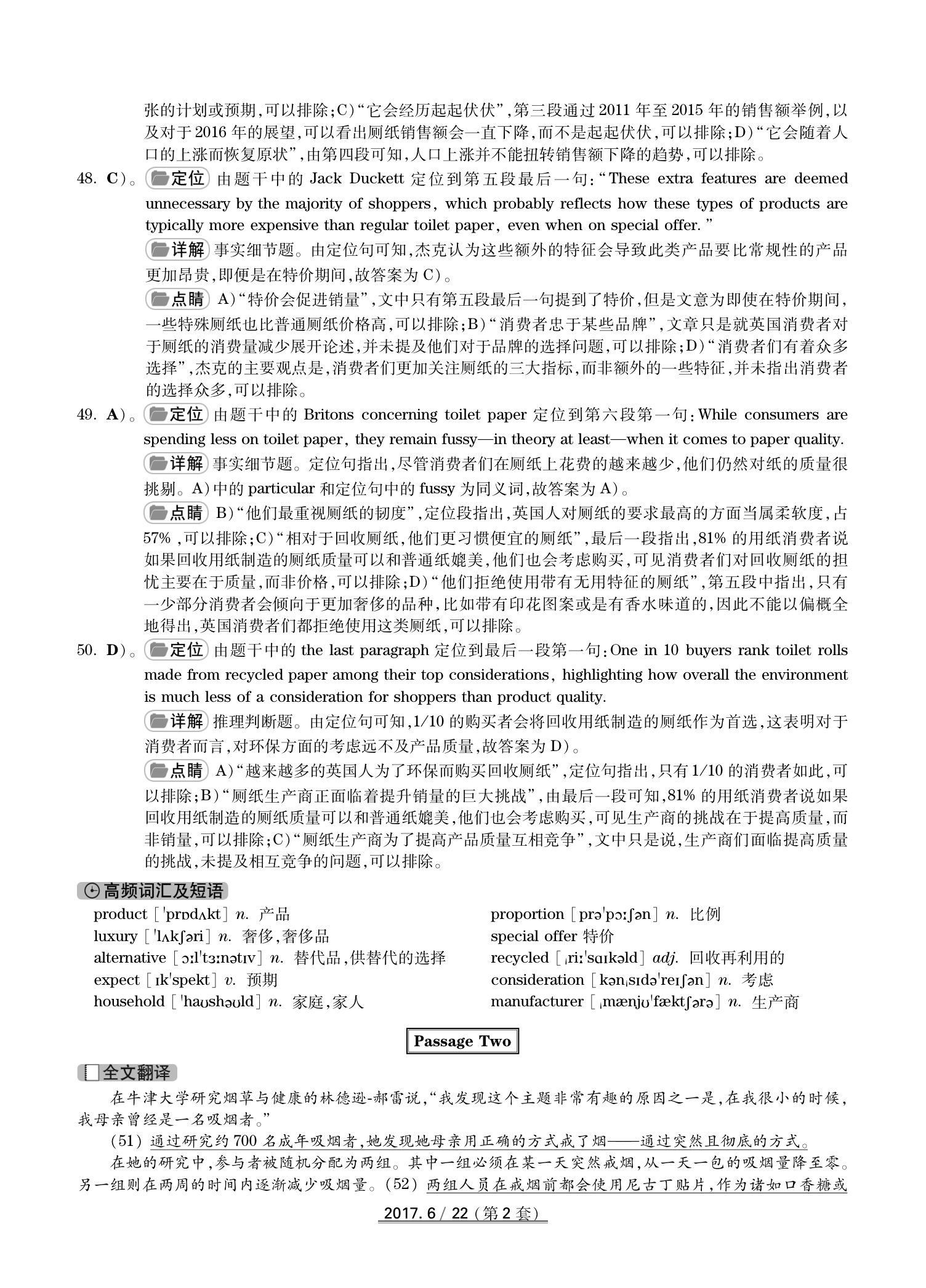 2017年6月英语四级真题(卷二)答案解析