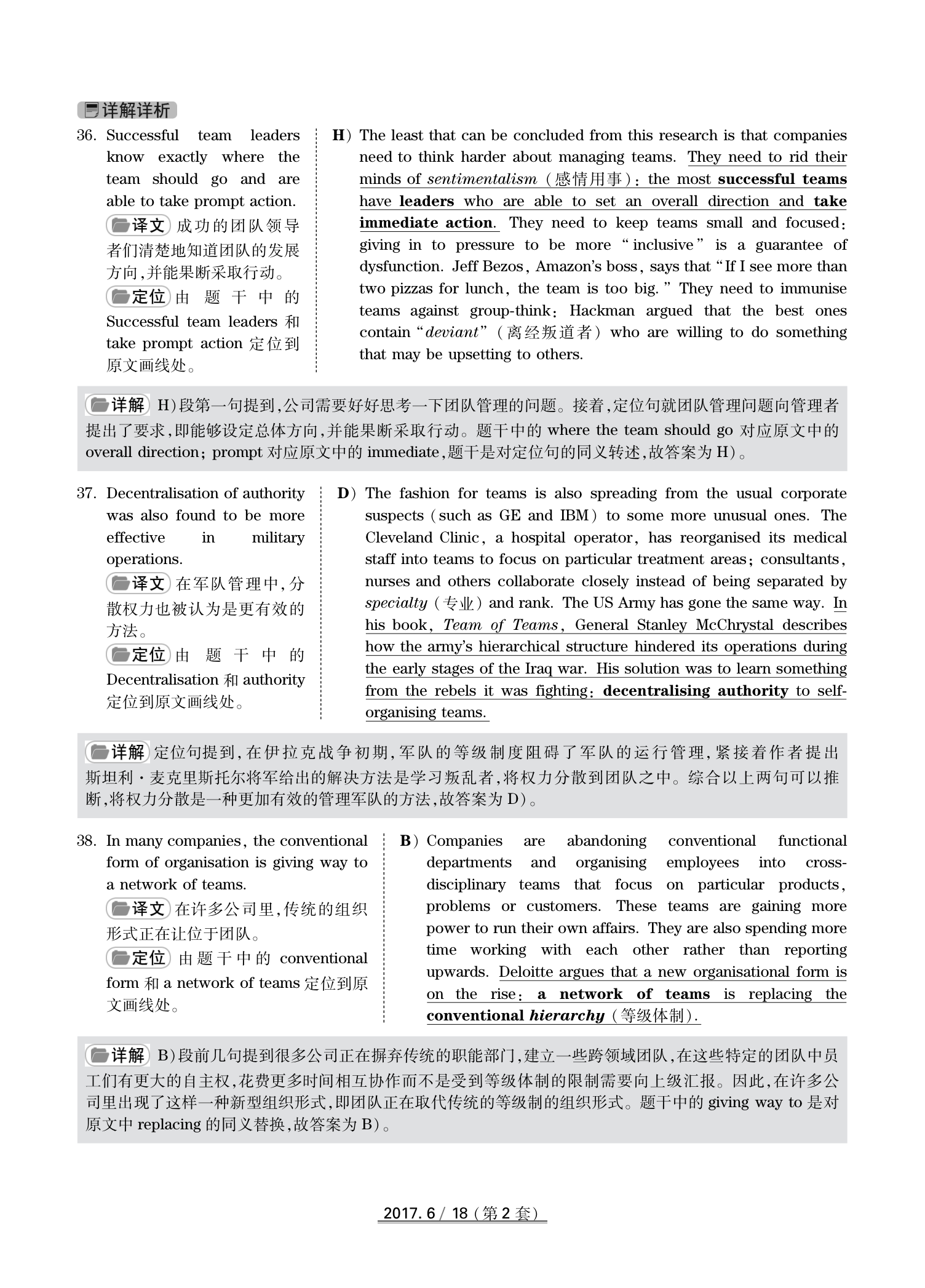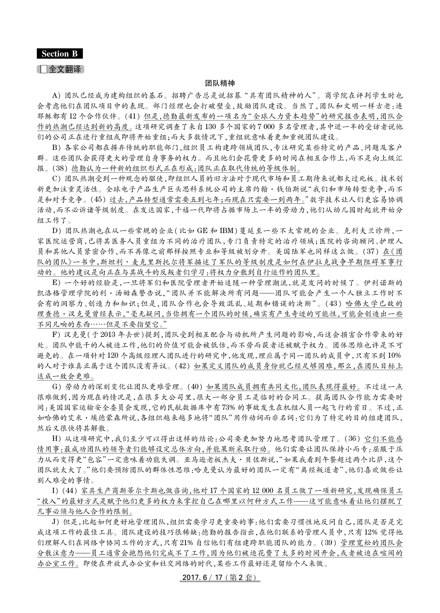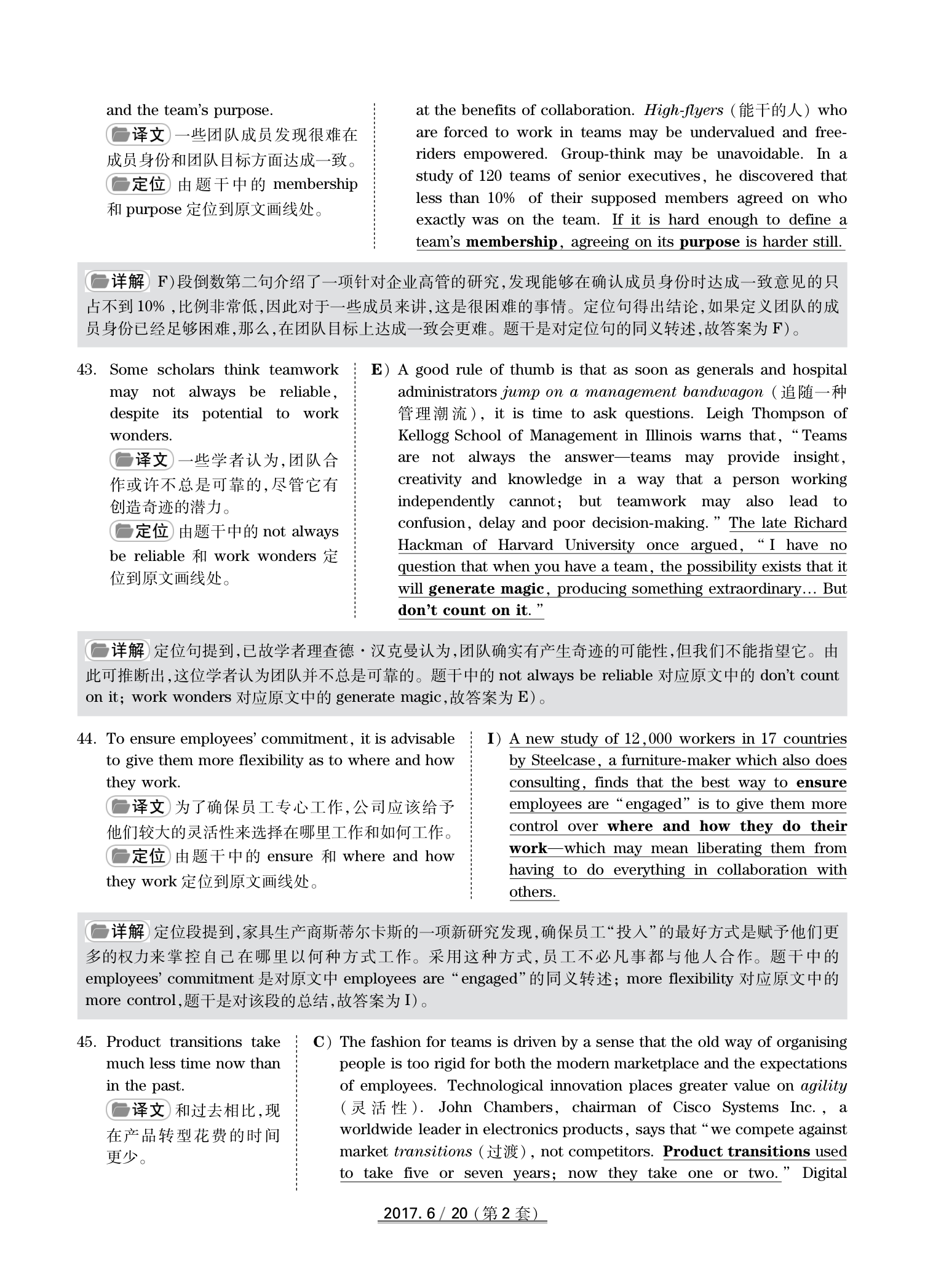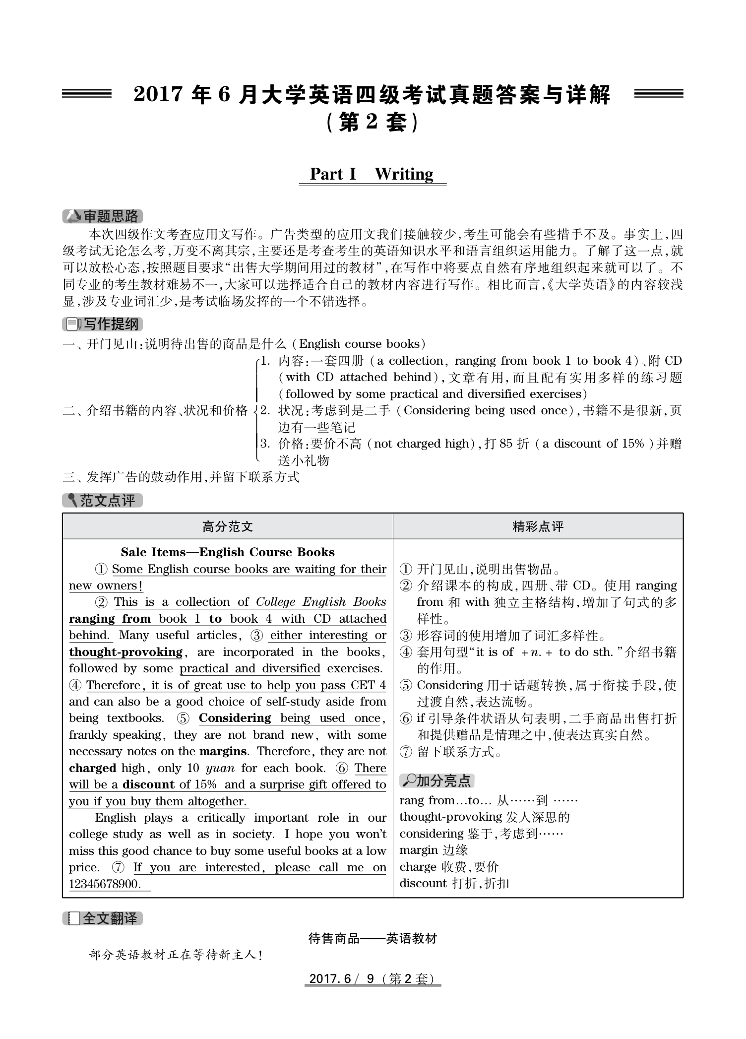 2017年6月英语四级真题(卷二)答案解析