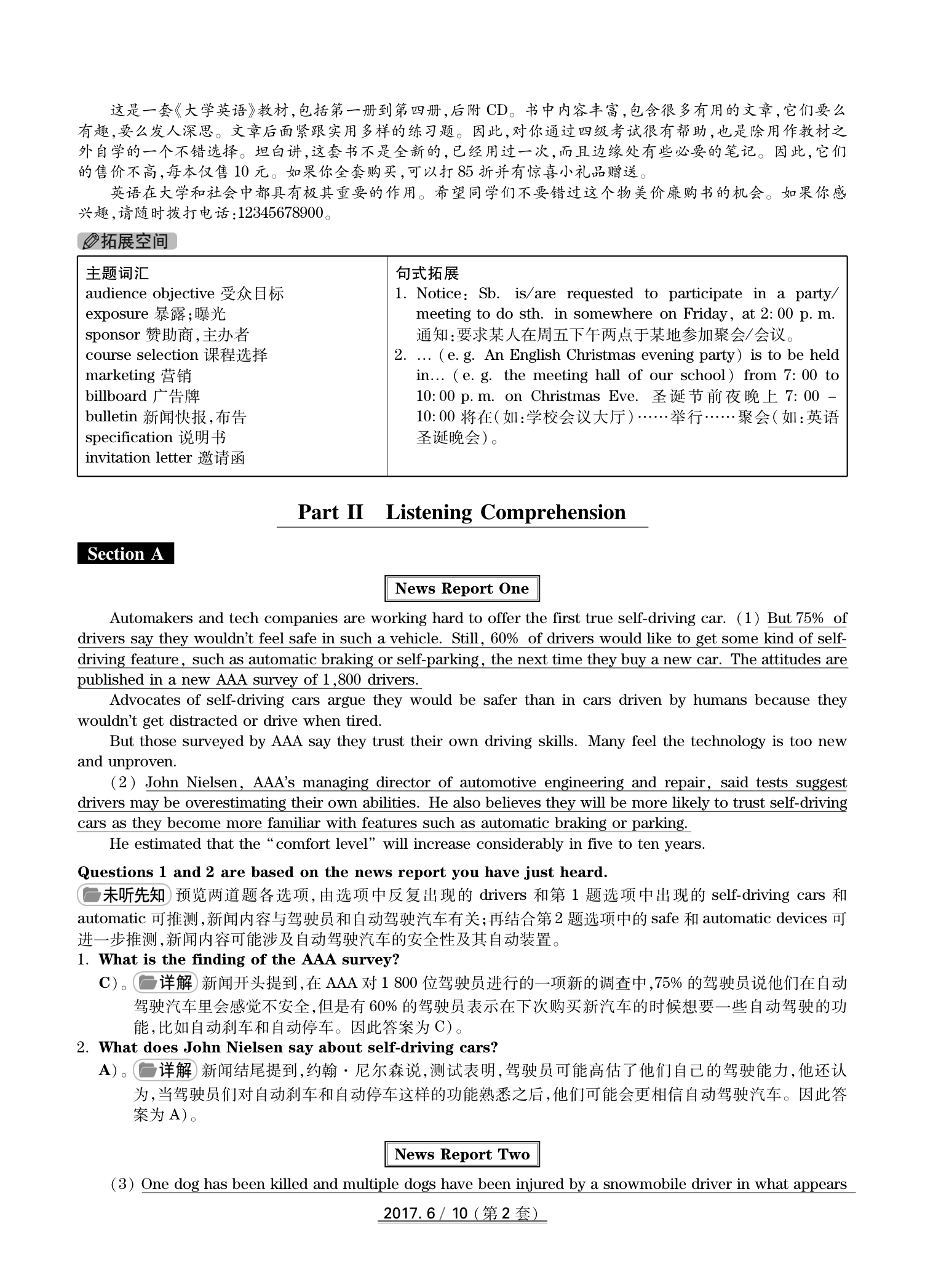 2017年6月大学英语四级真题(卷二)