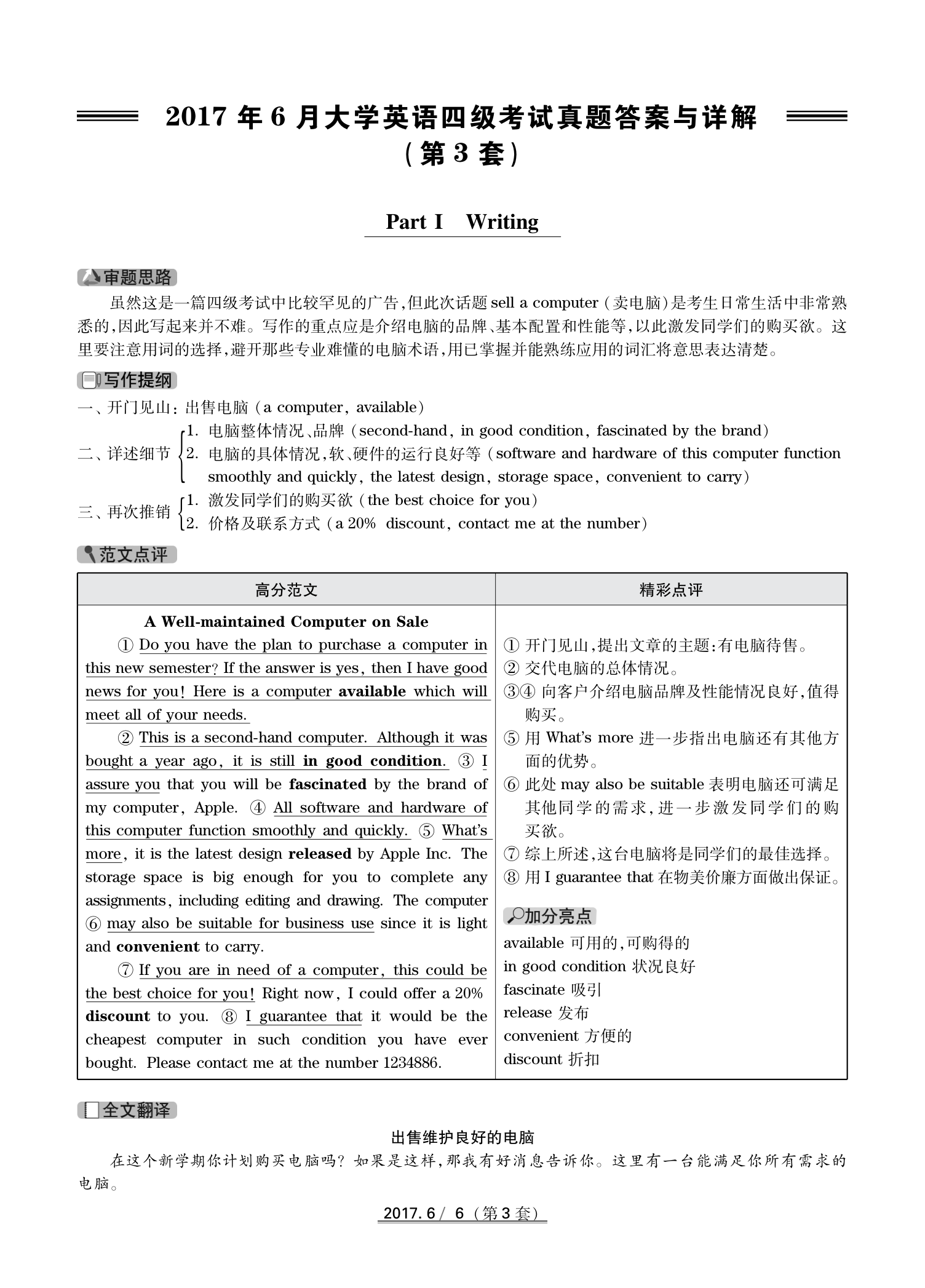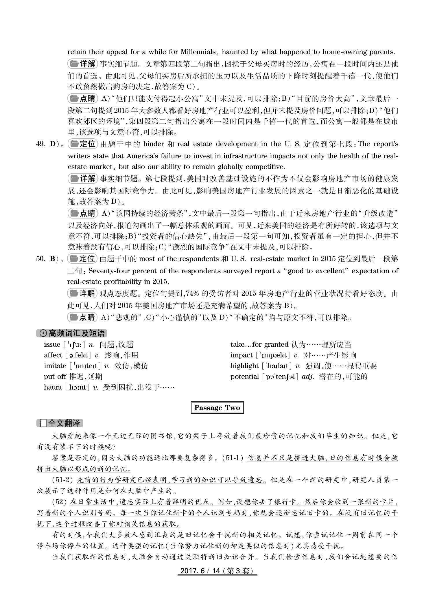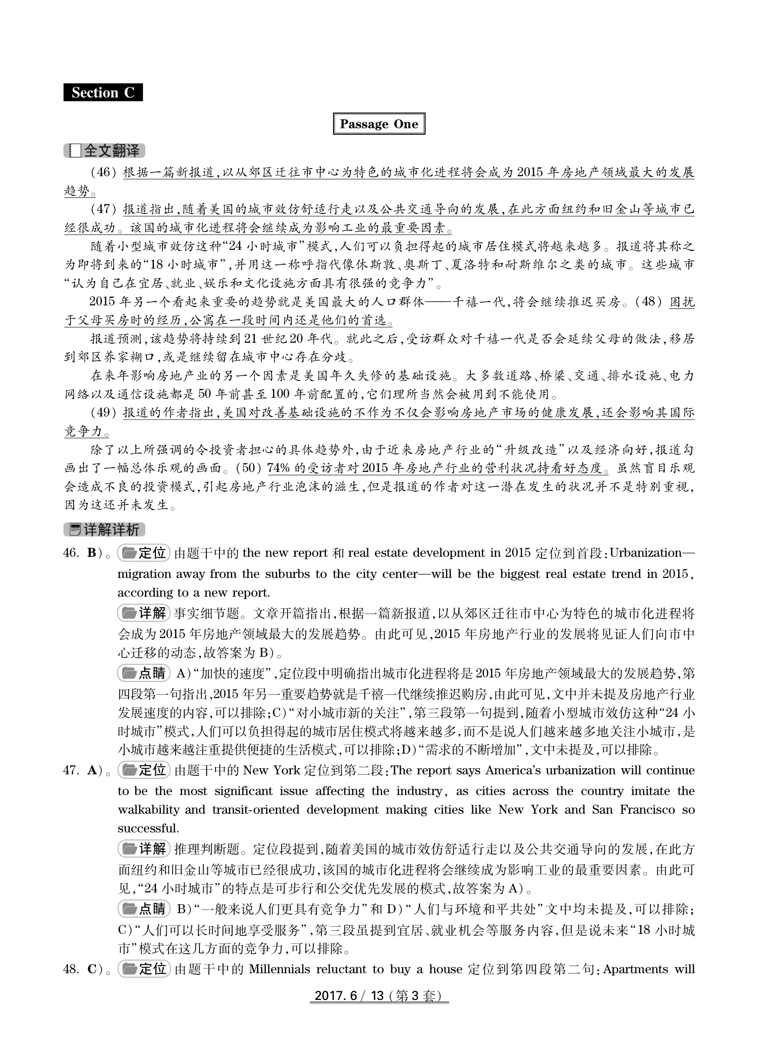 2017年6月英语四级真题(卷三)答案解析