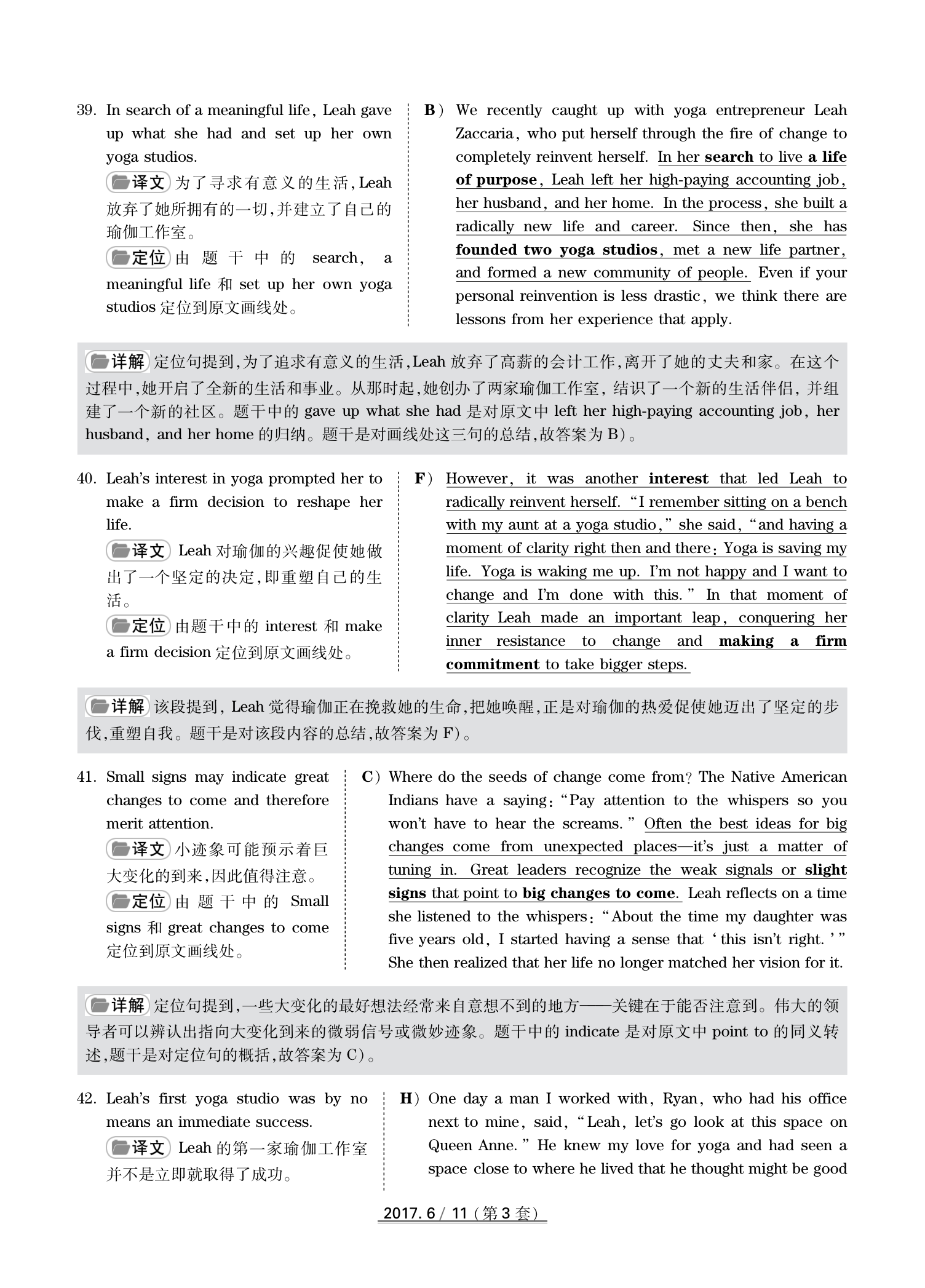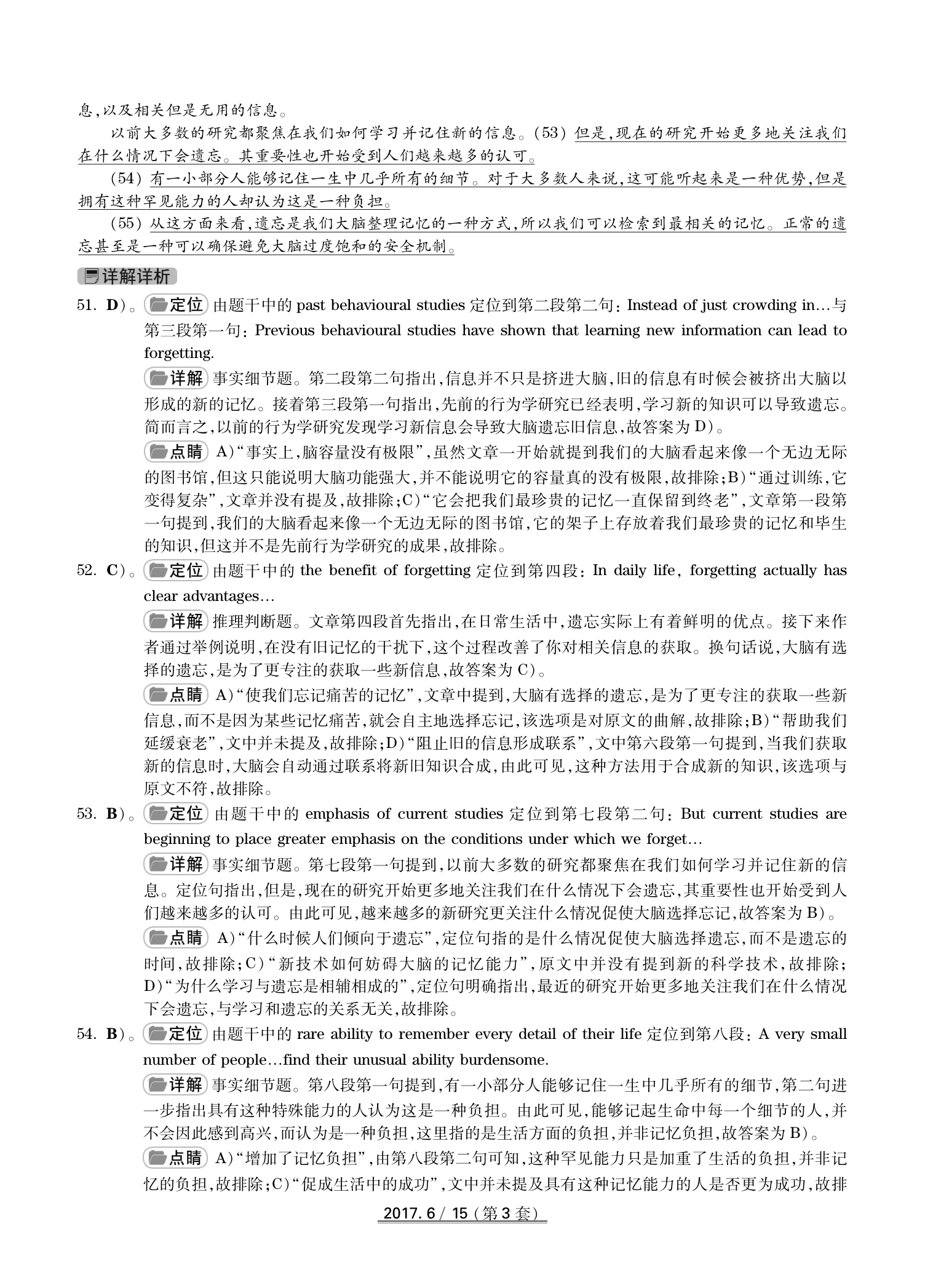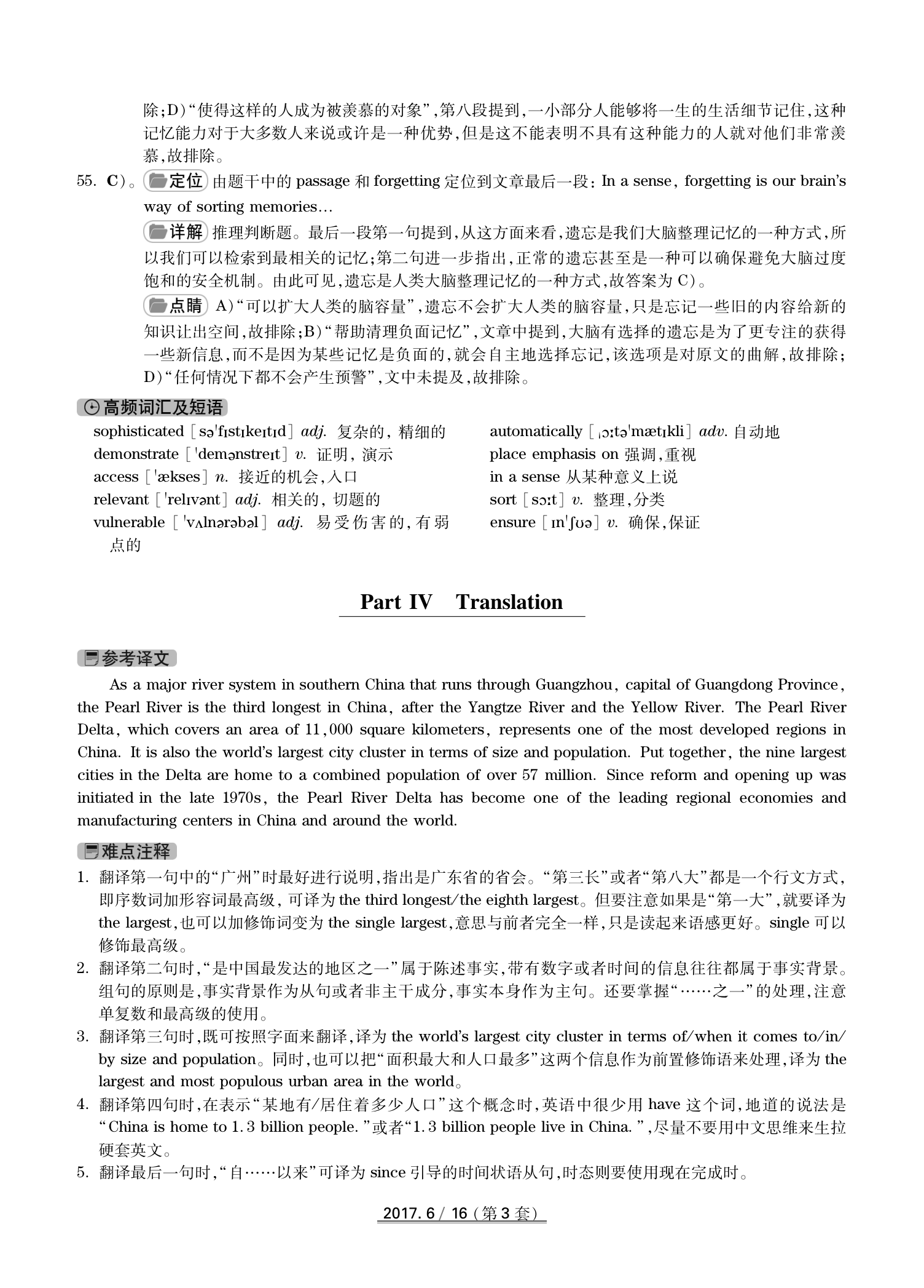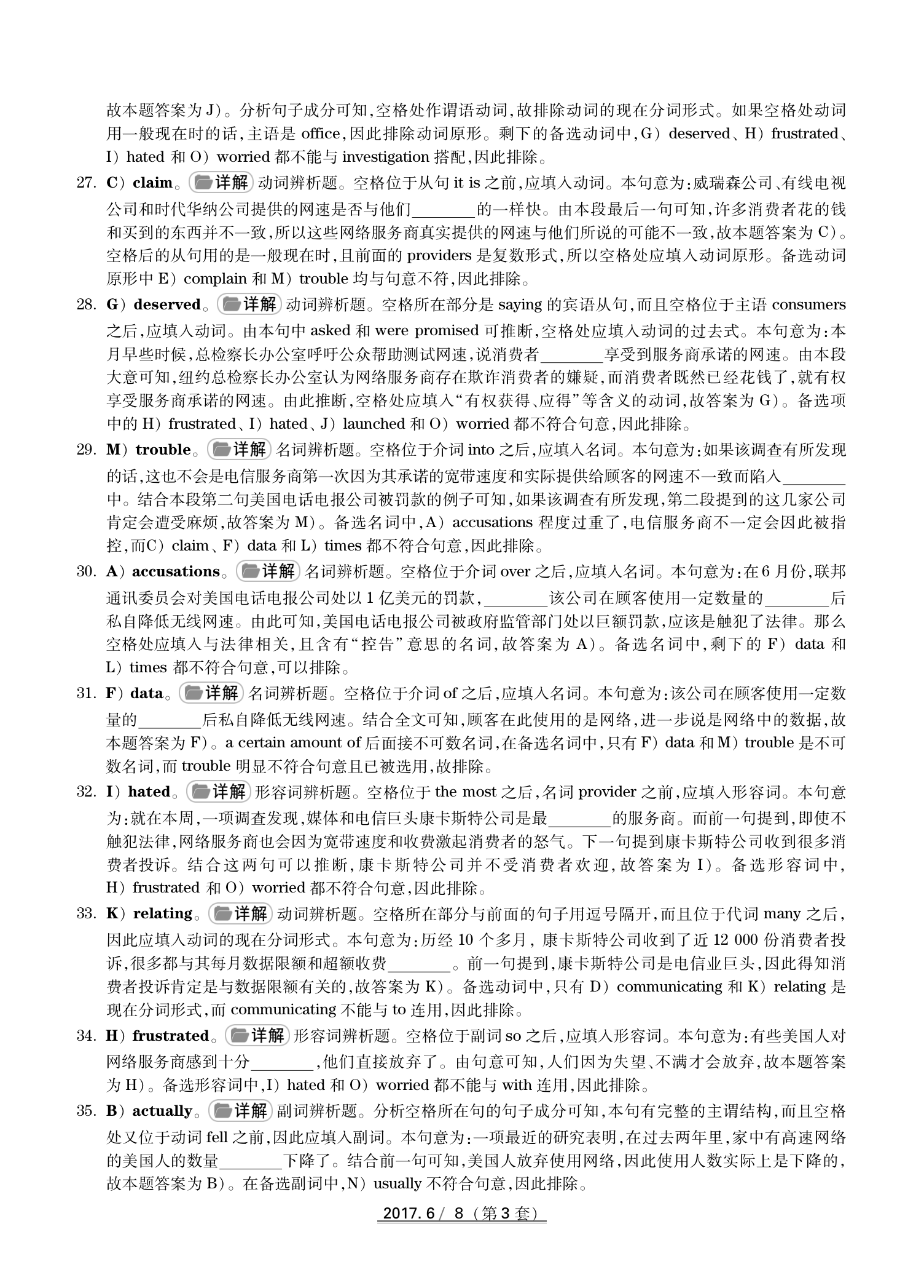 2017年6月英语四级真题(卷三)答案解析