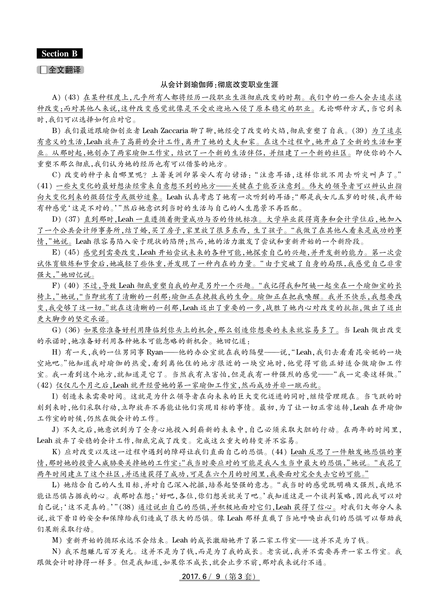 2017年6月大学英语四级真题(卷三)