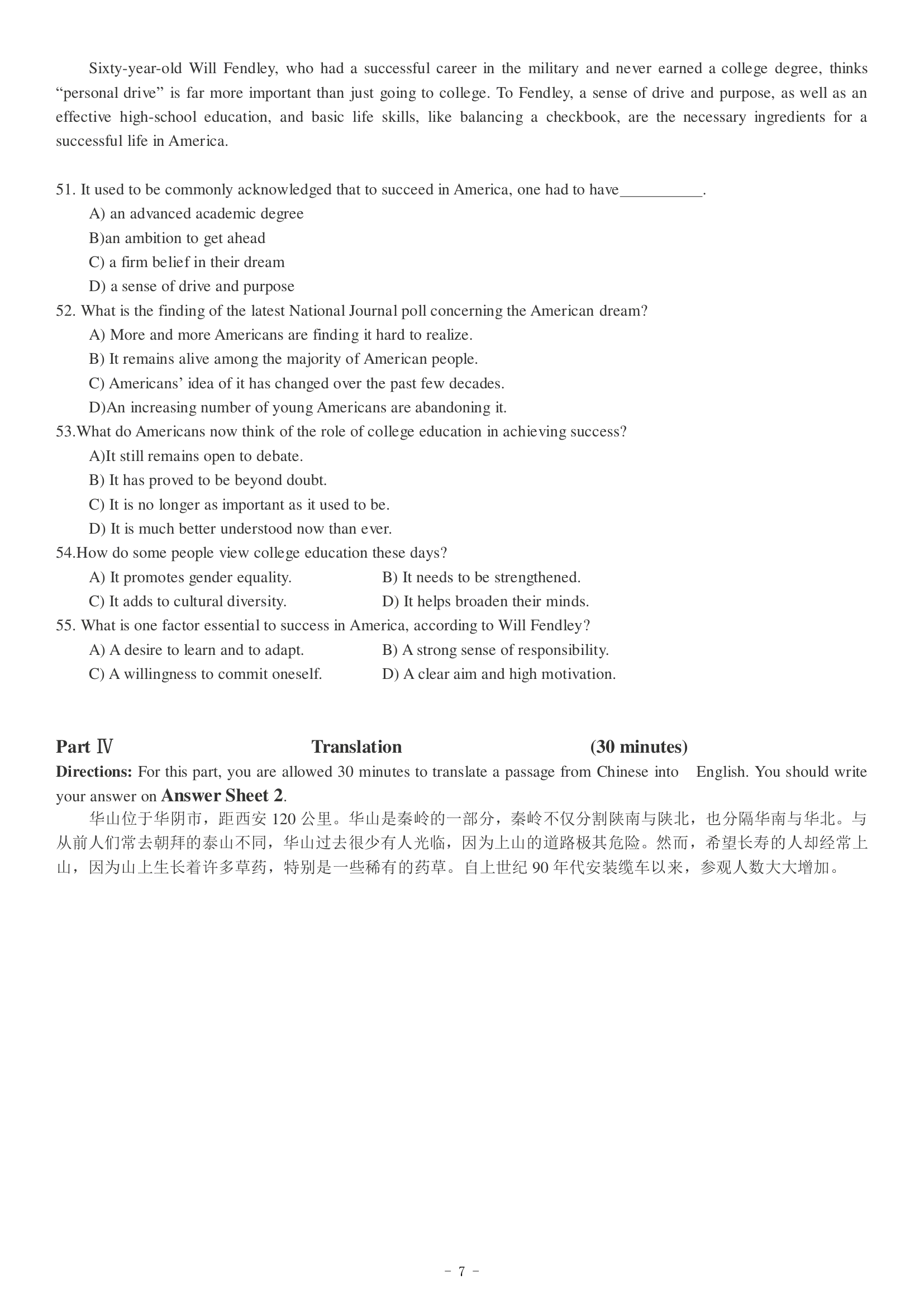 2017年12月英语四级真题(卷二)
