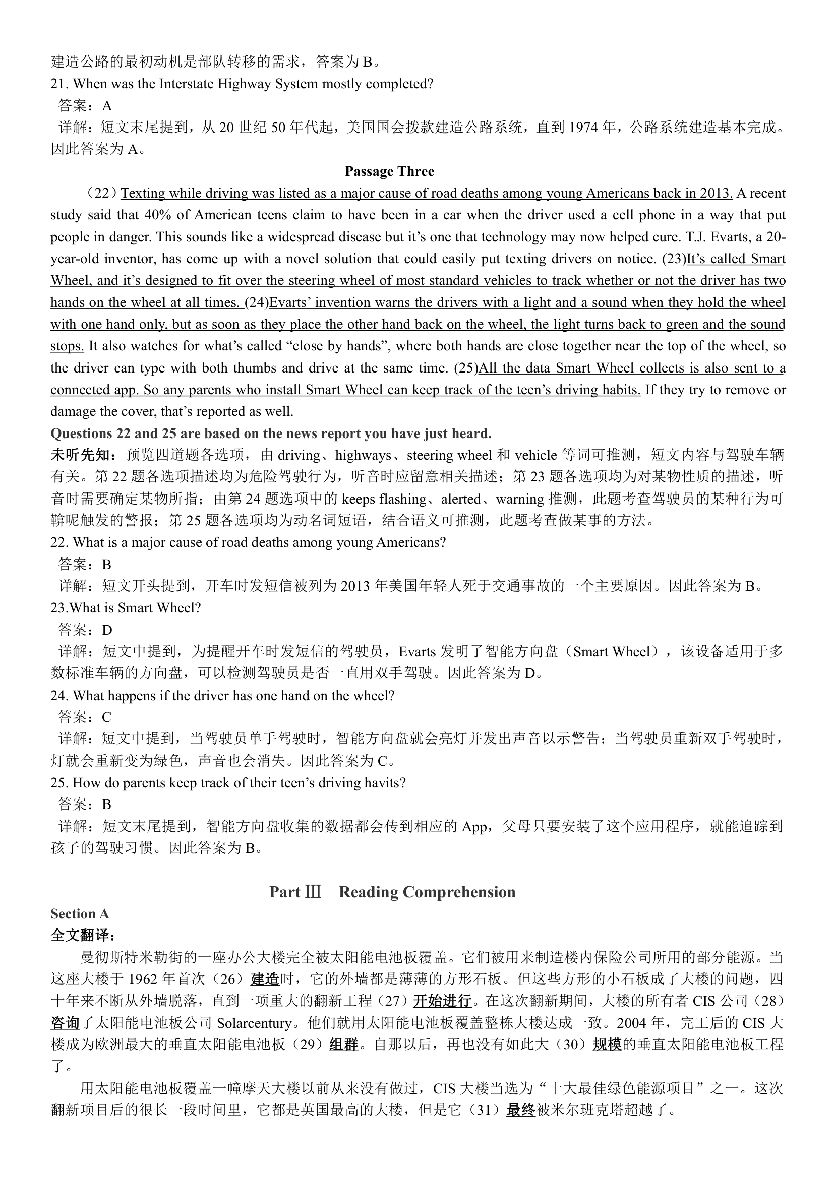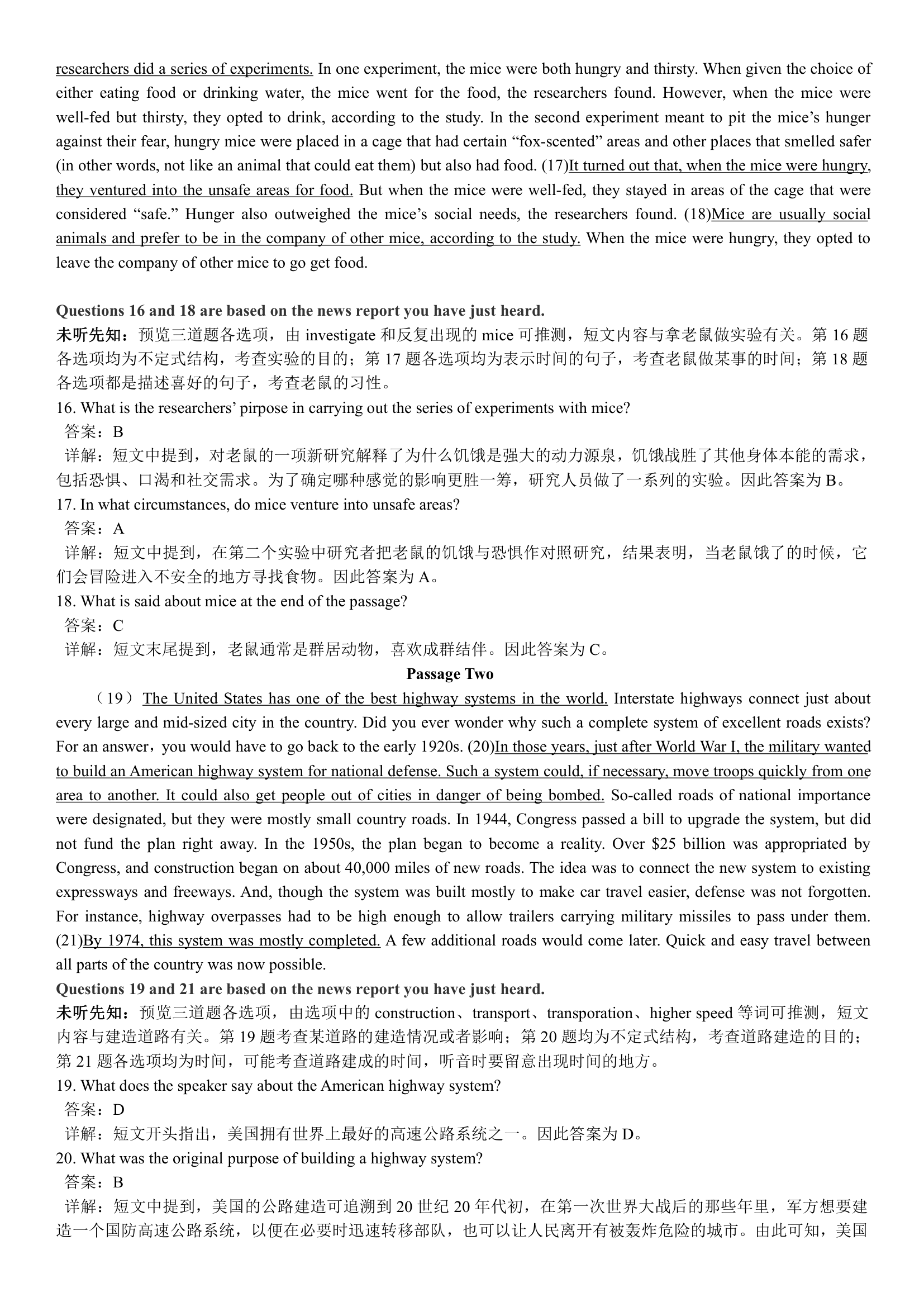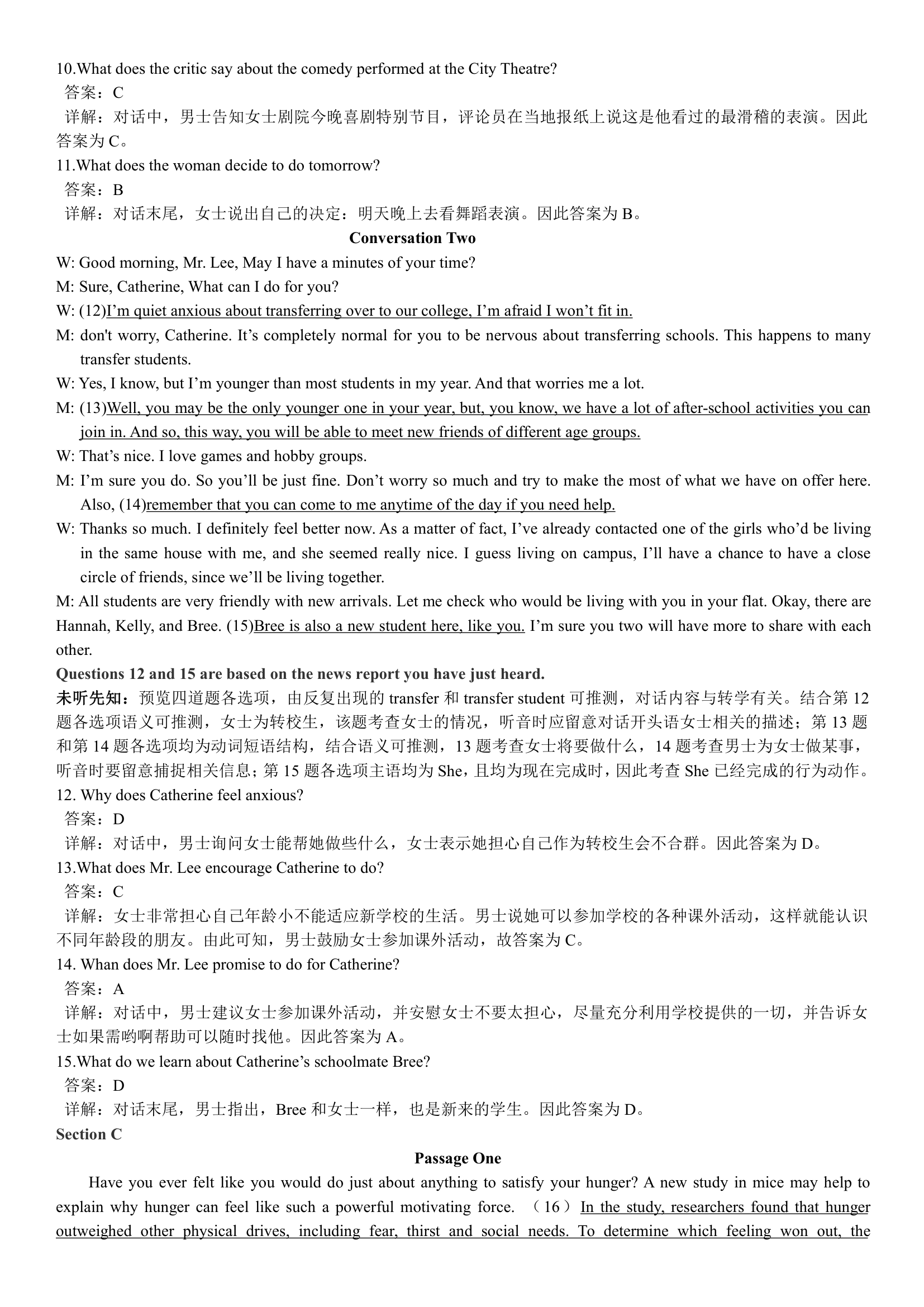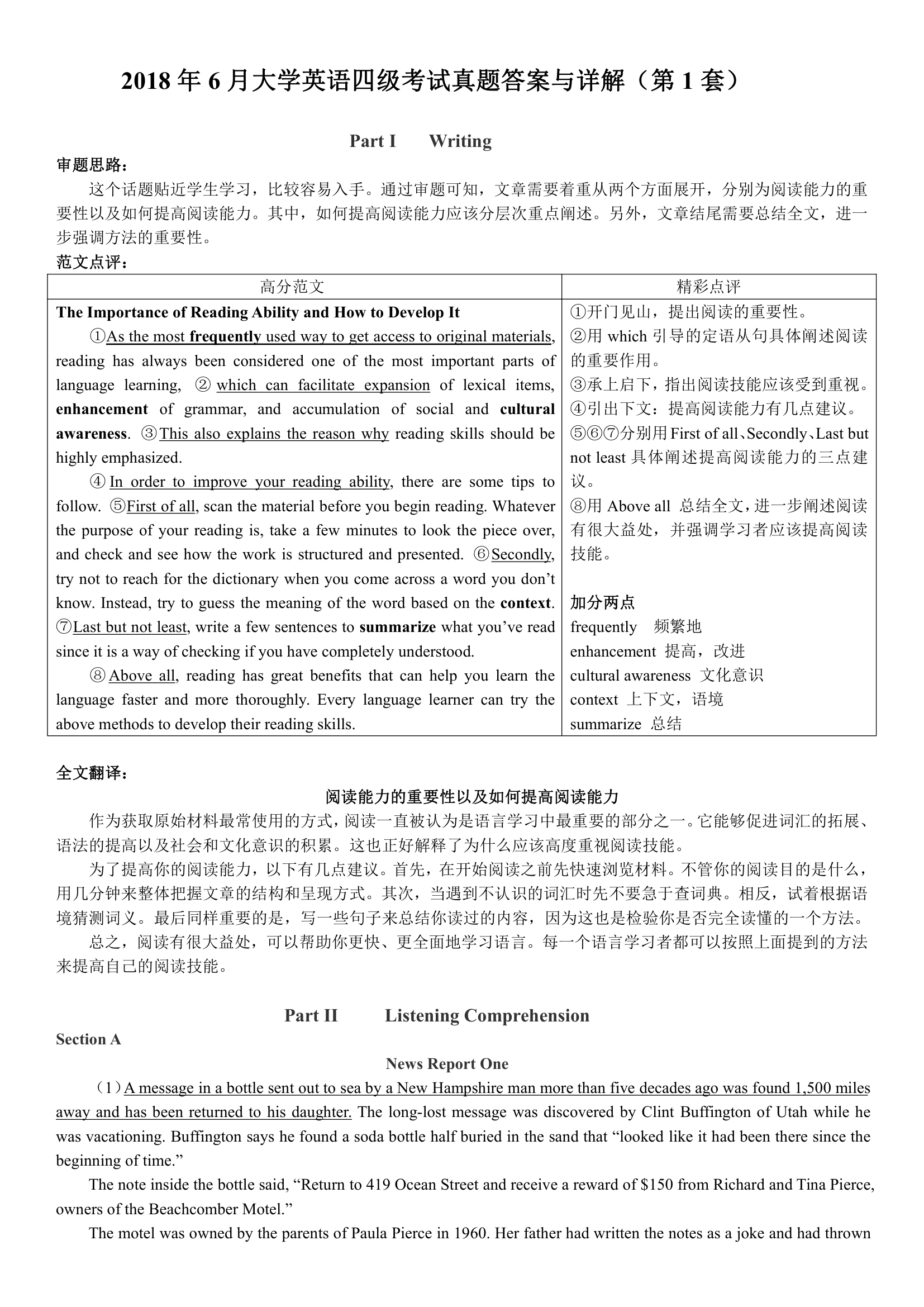 2018年6月英语四级真题答案解析(卷一)