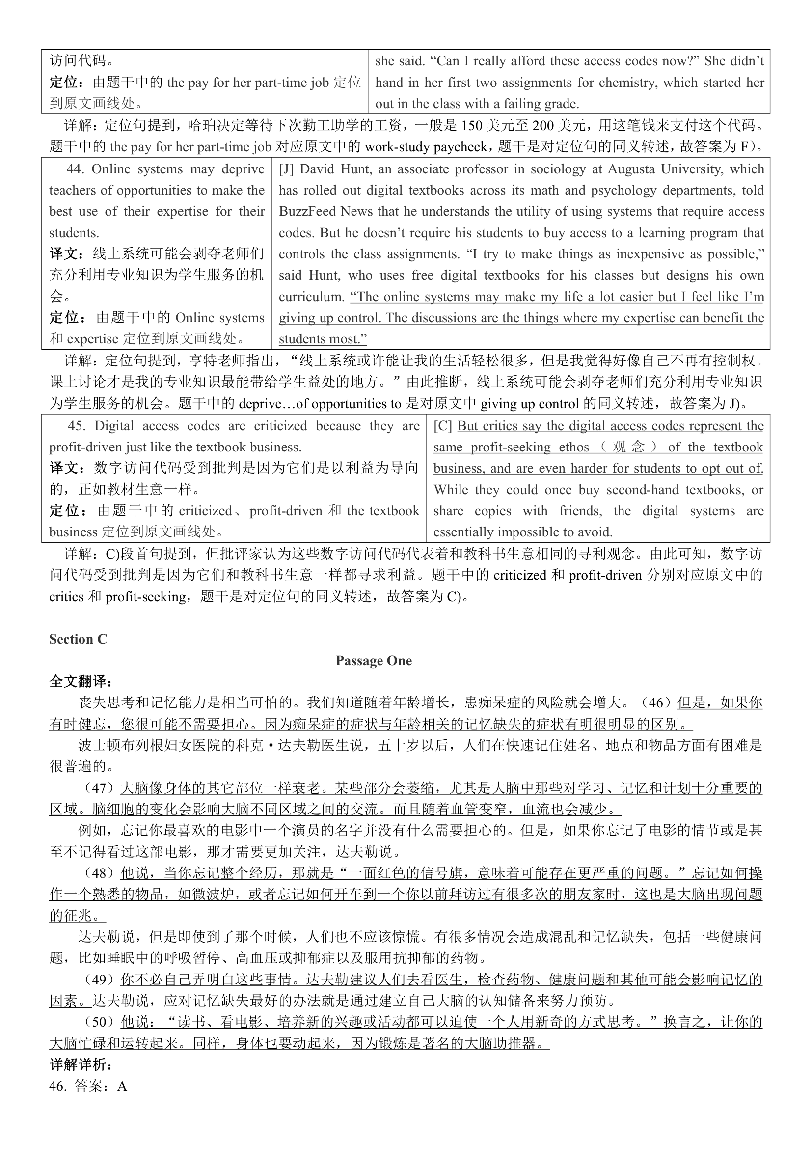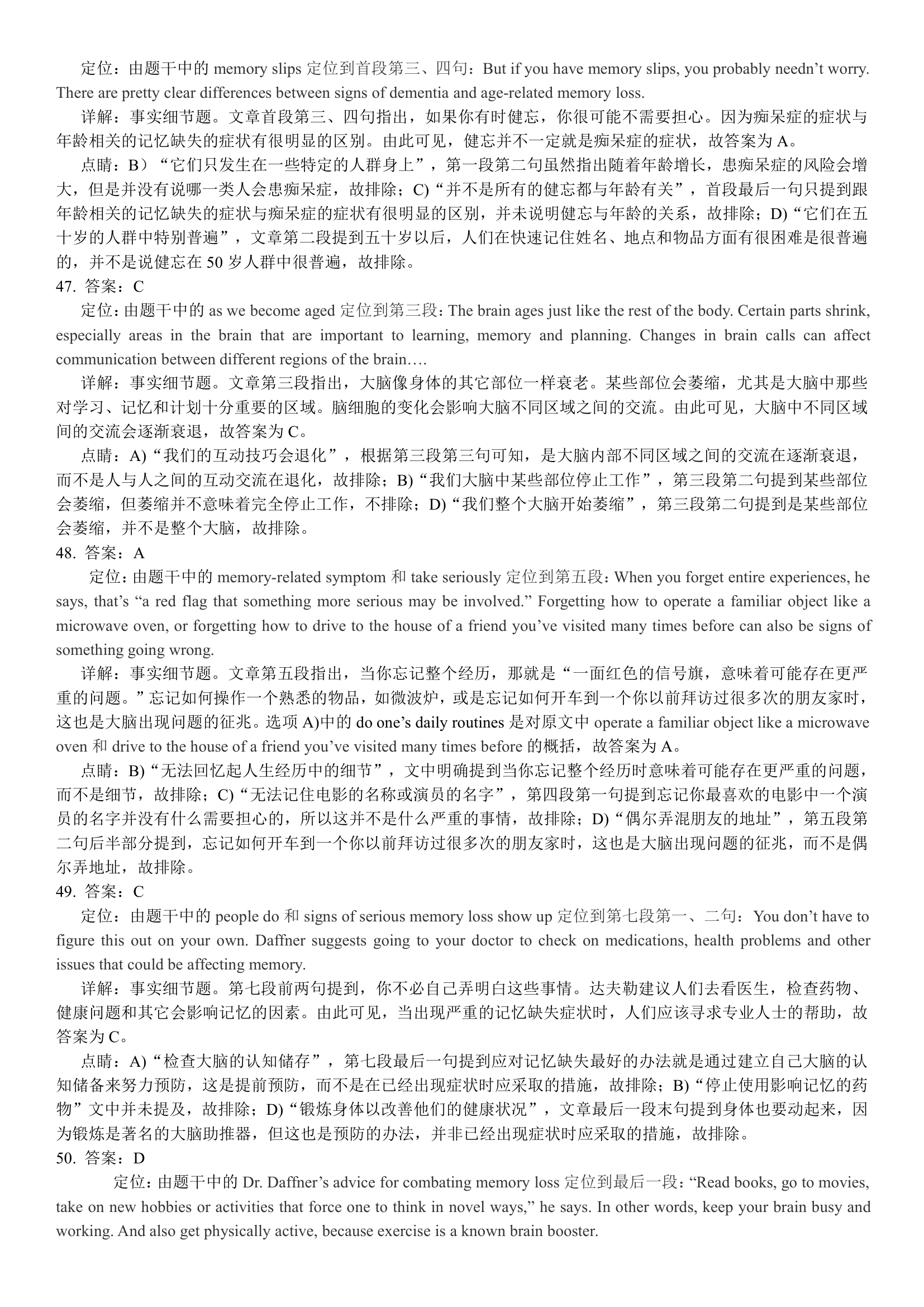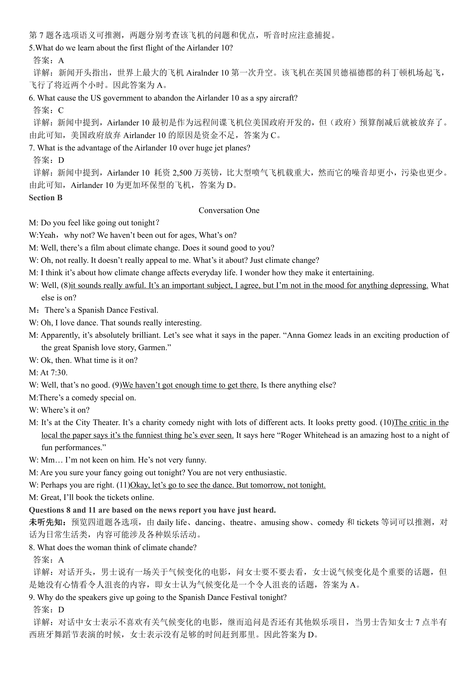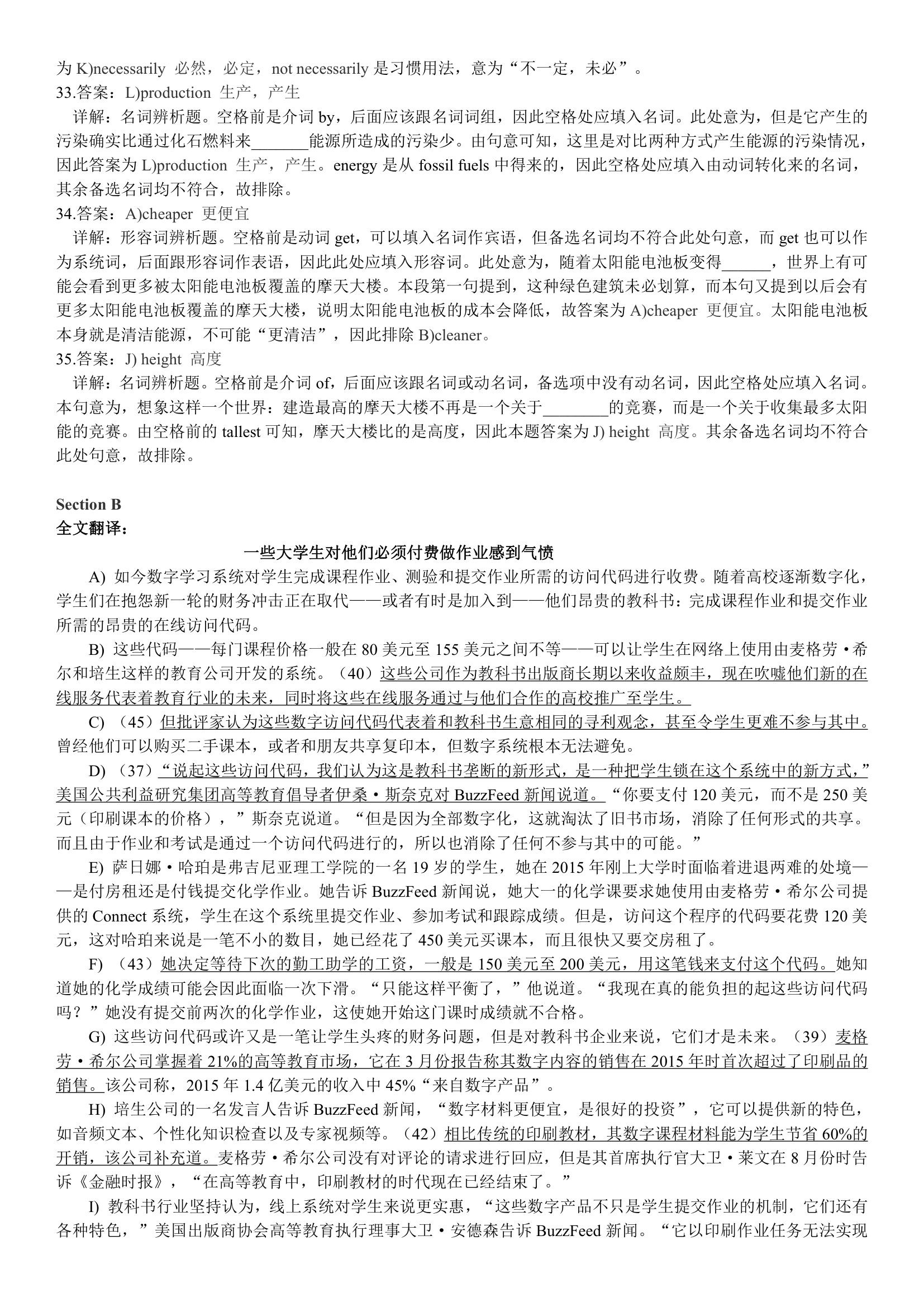 2018年6月英语四级真题答案解析(卷一)