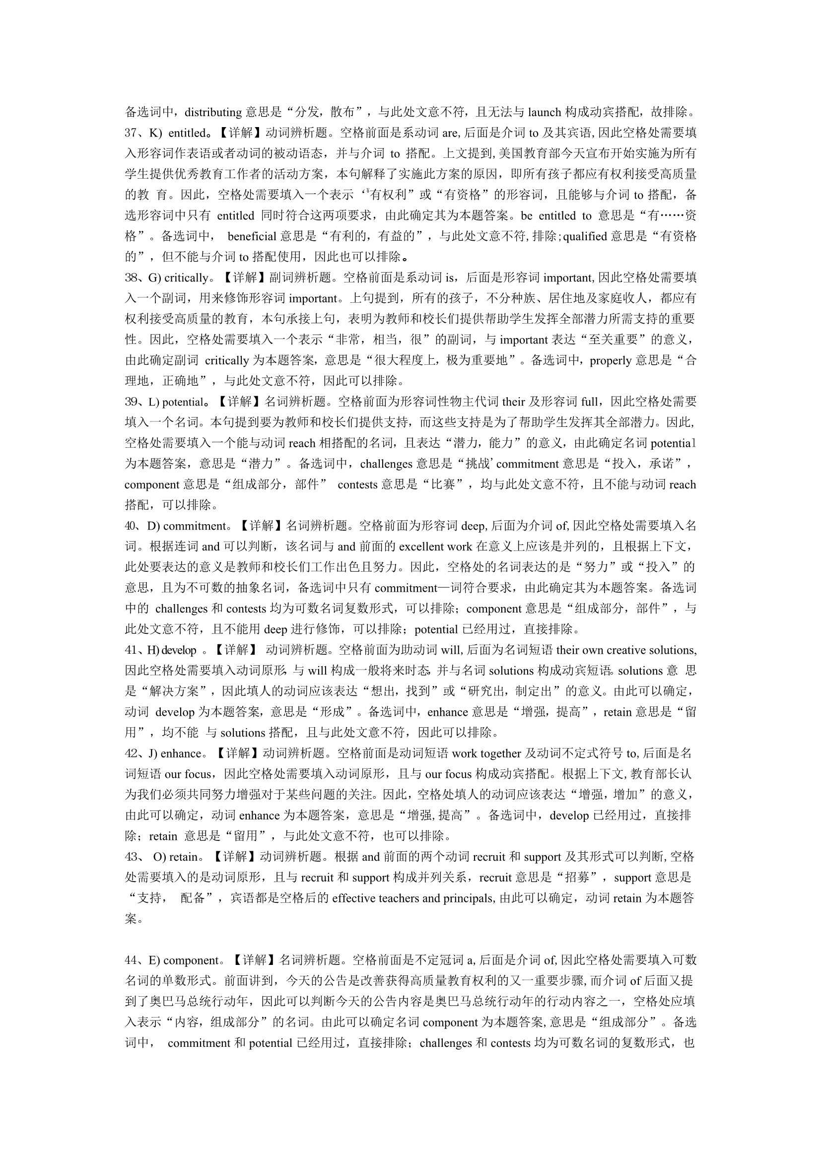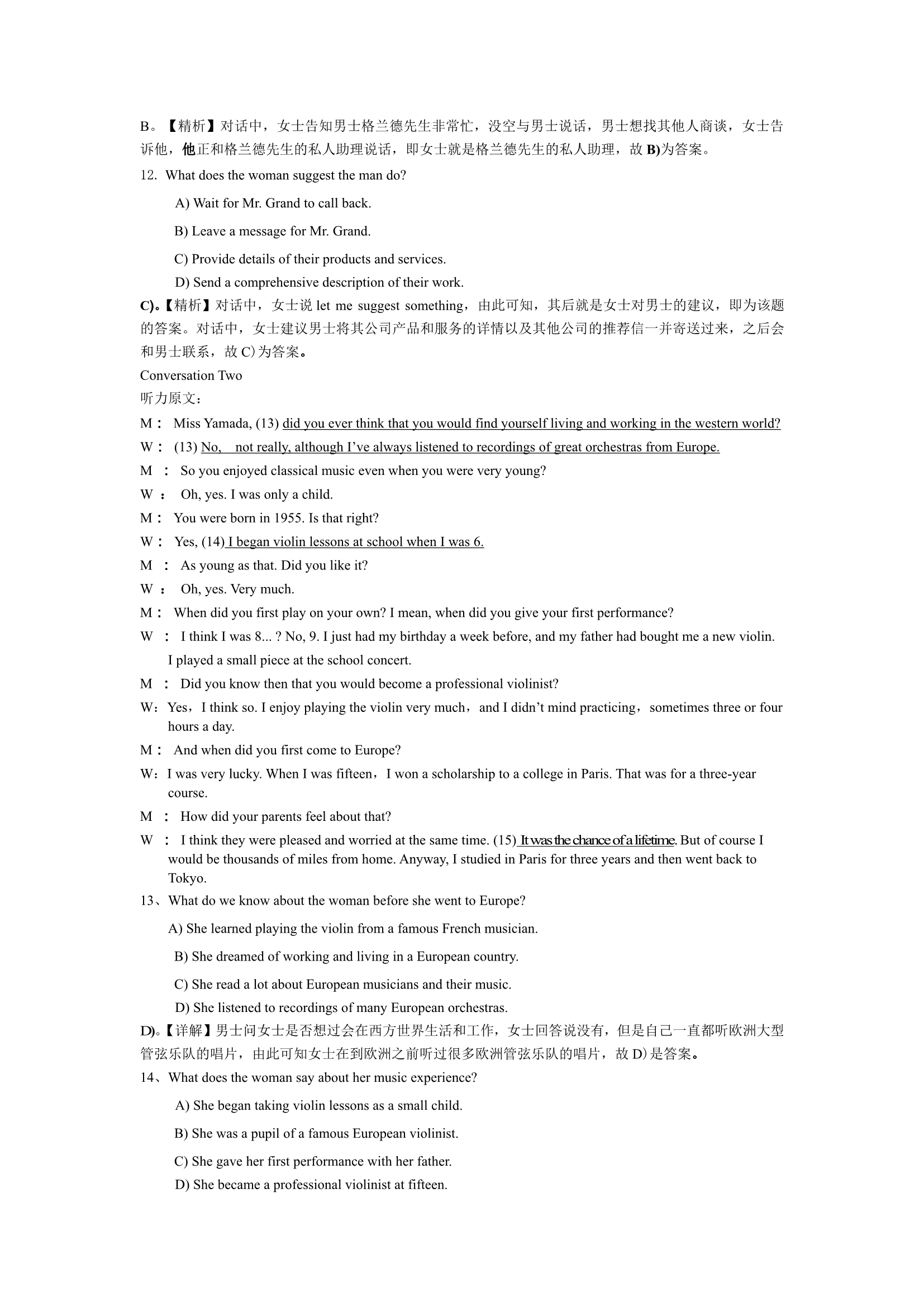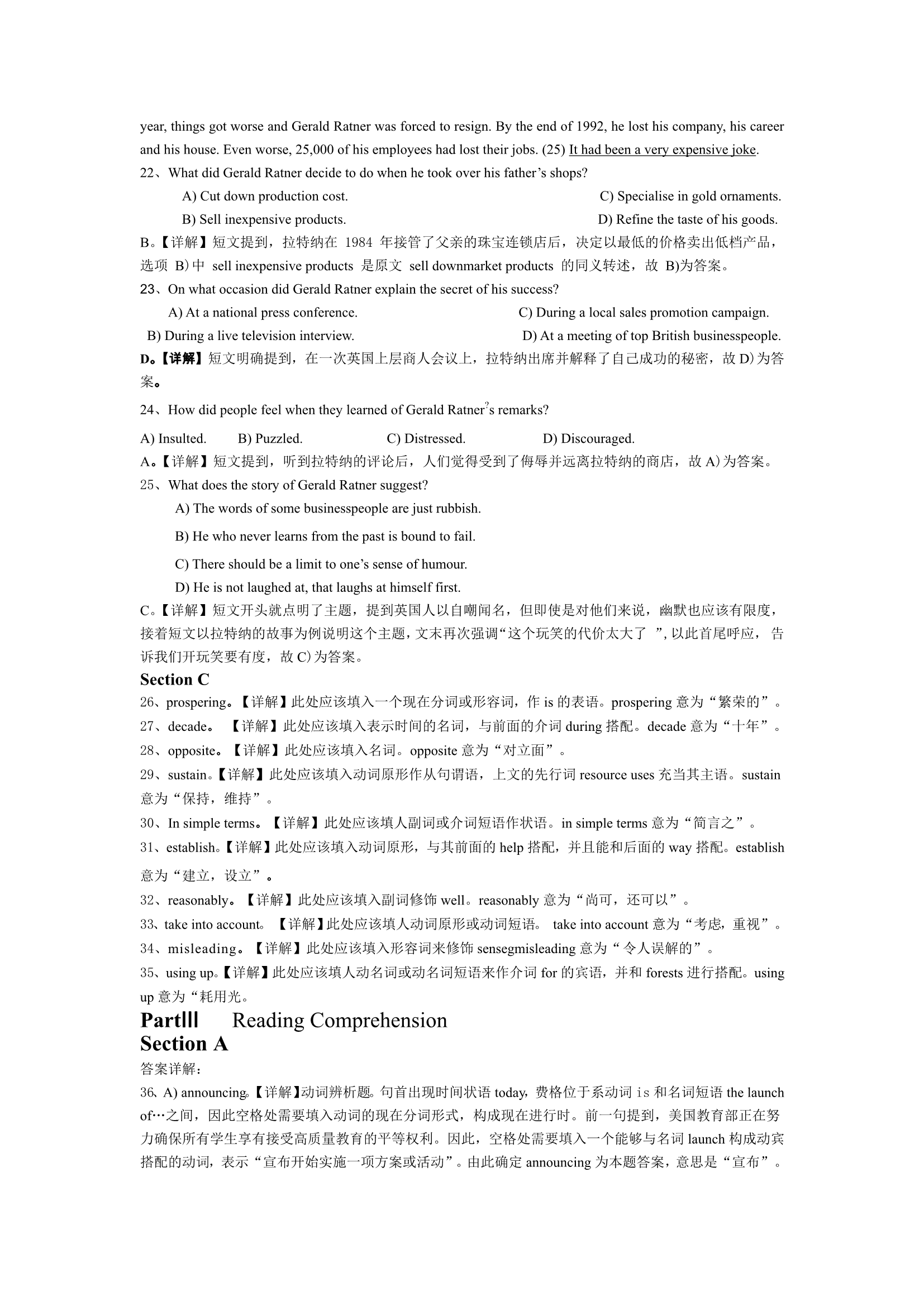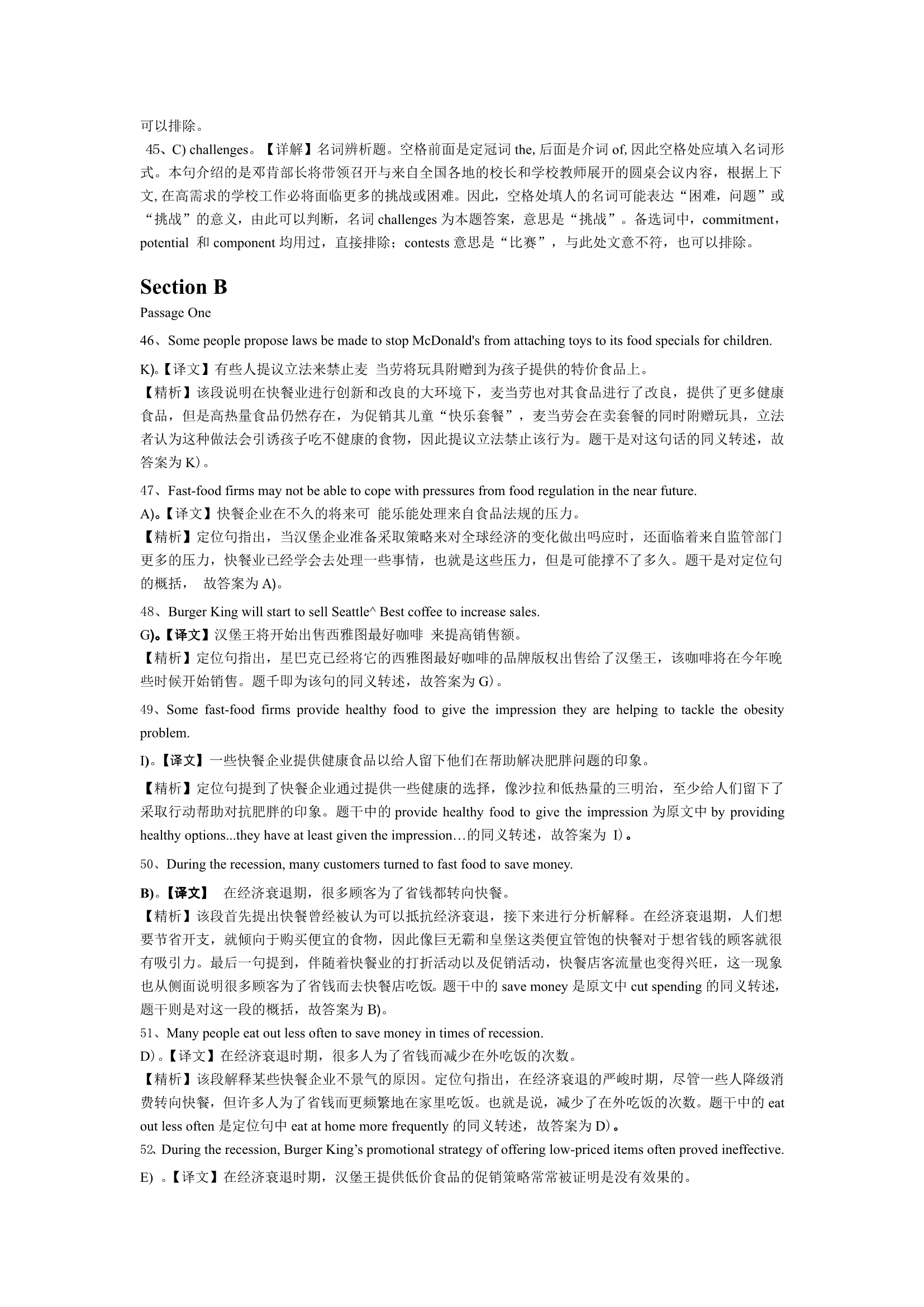 2015年6月英语四级真题答案及解析(卷一)