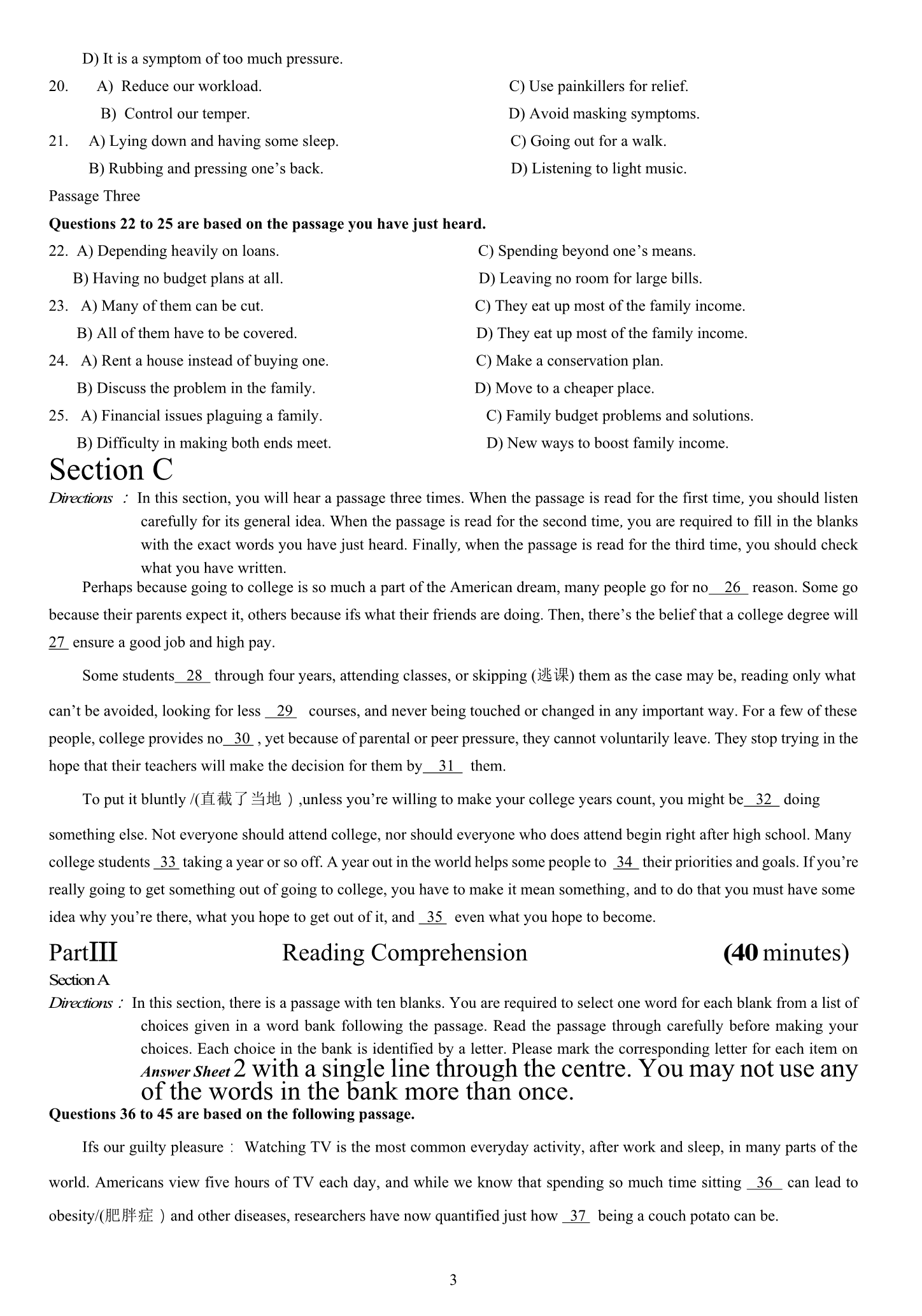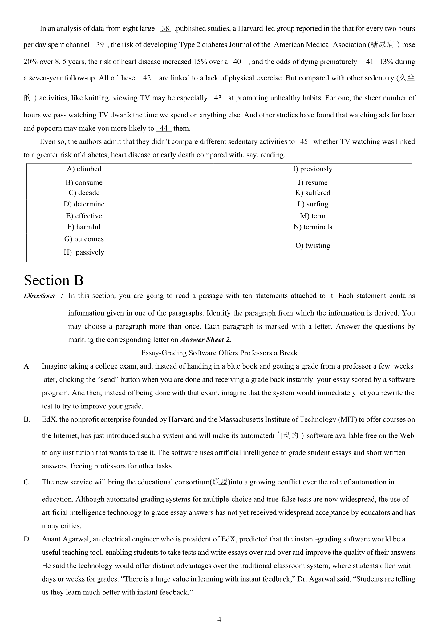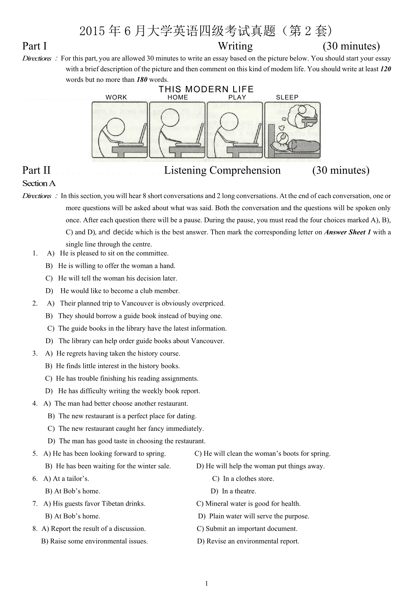 2015年6月大学英语四级真题(卷二)