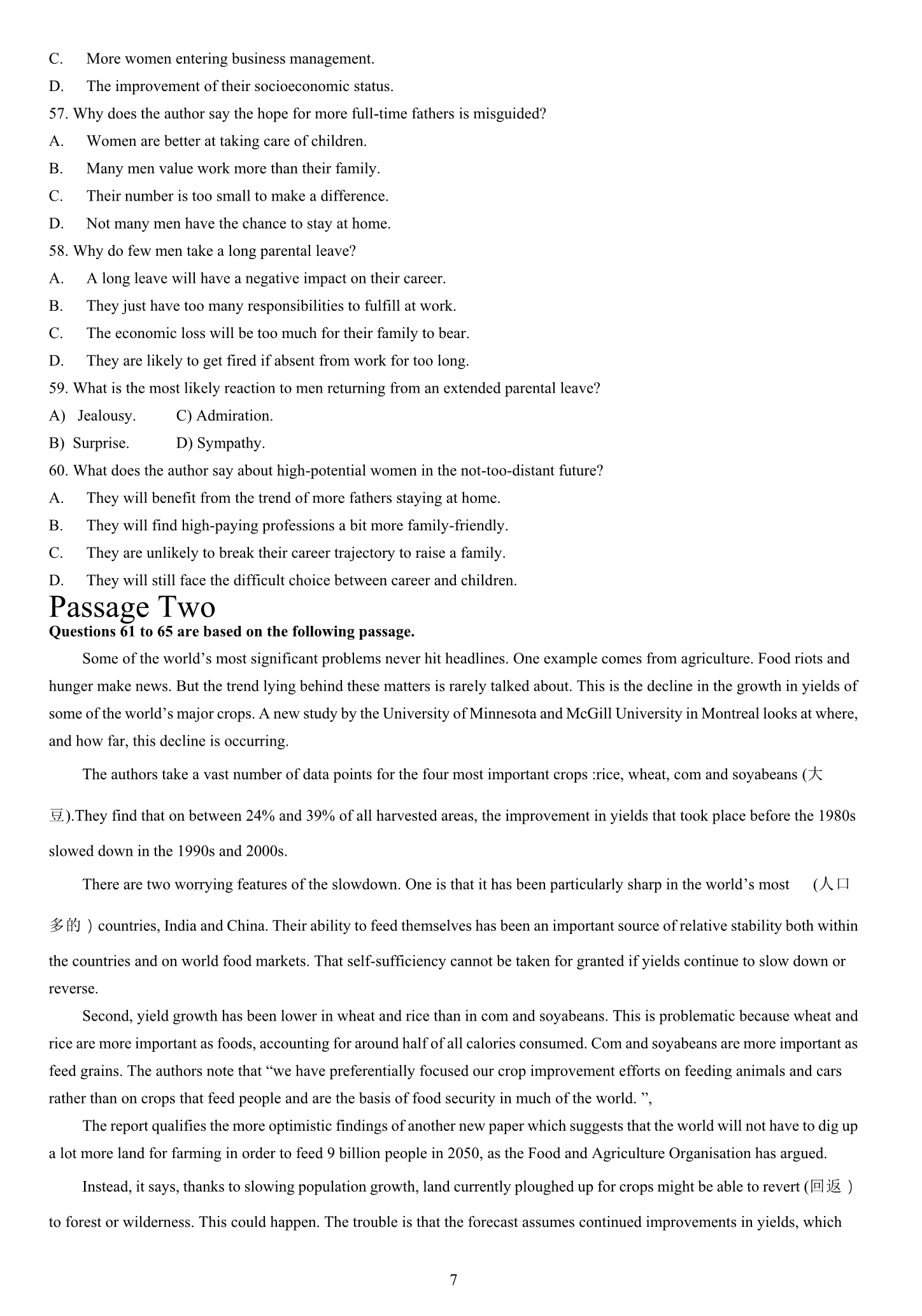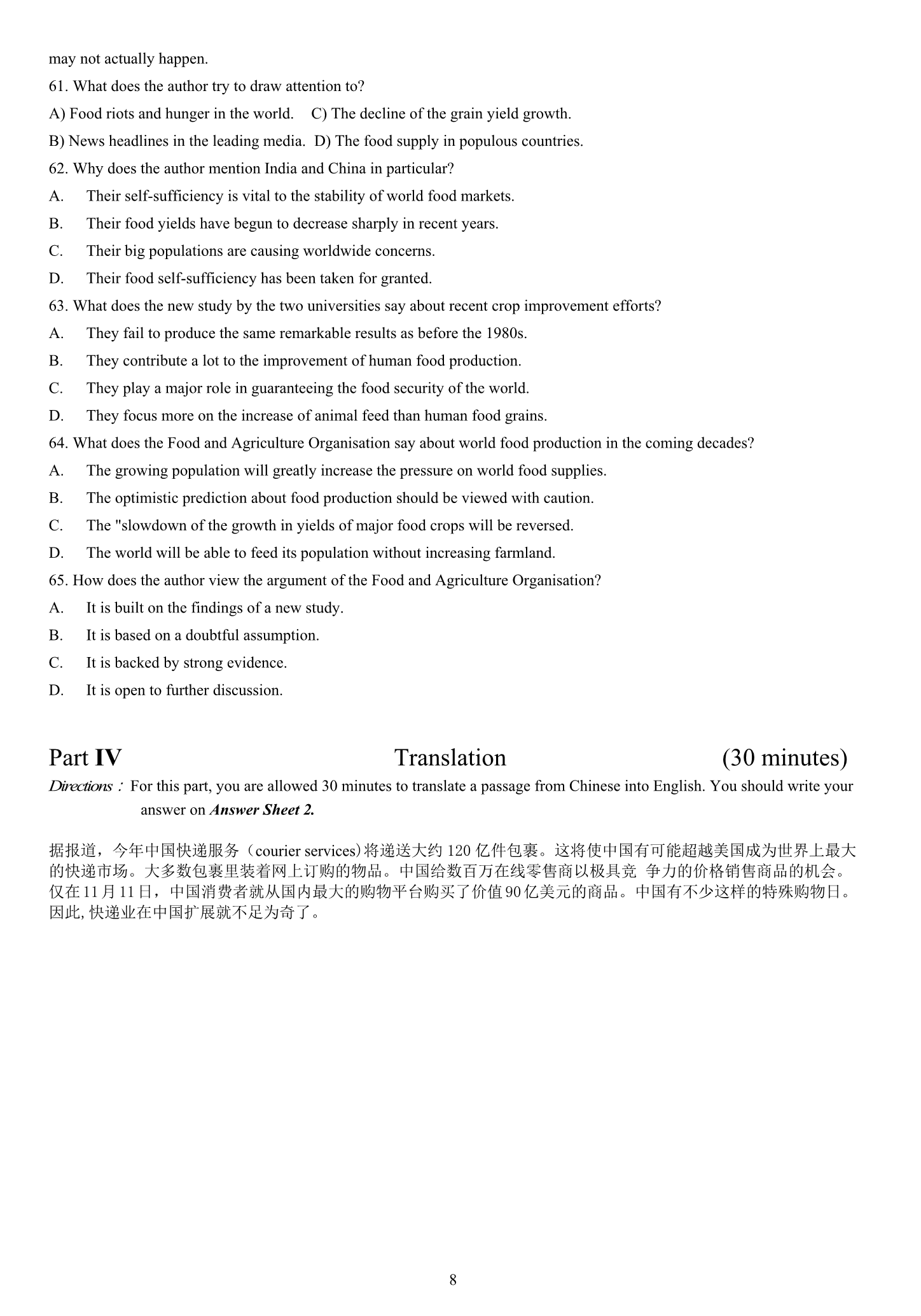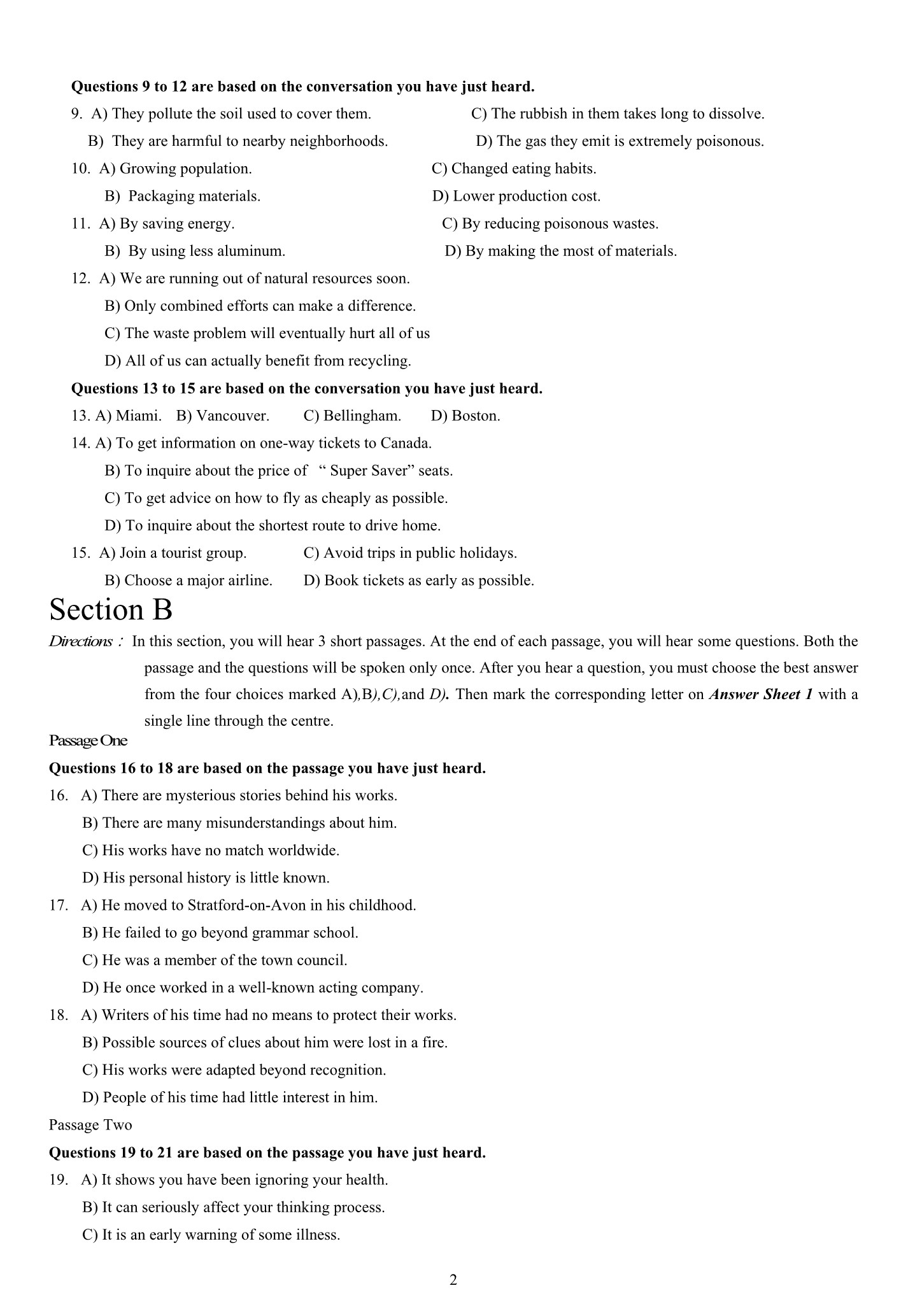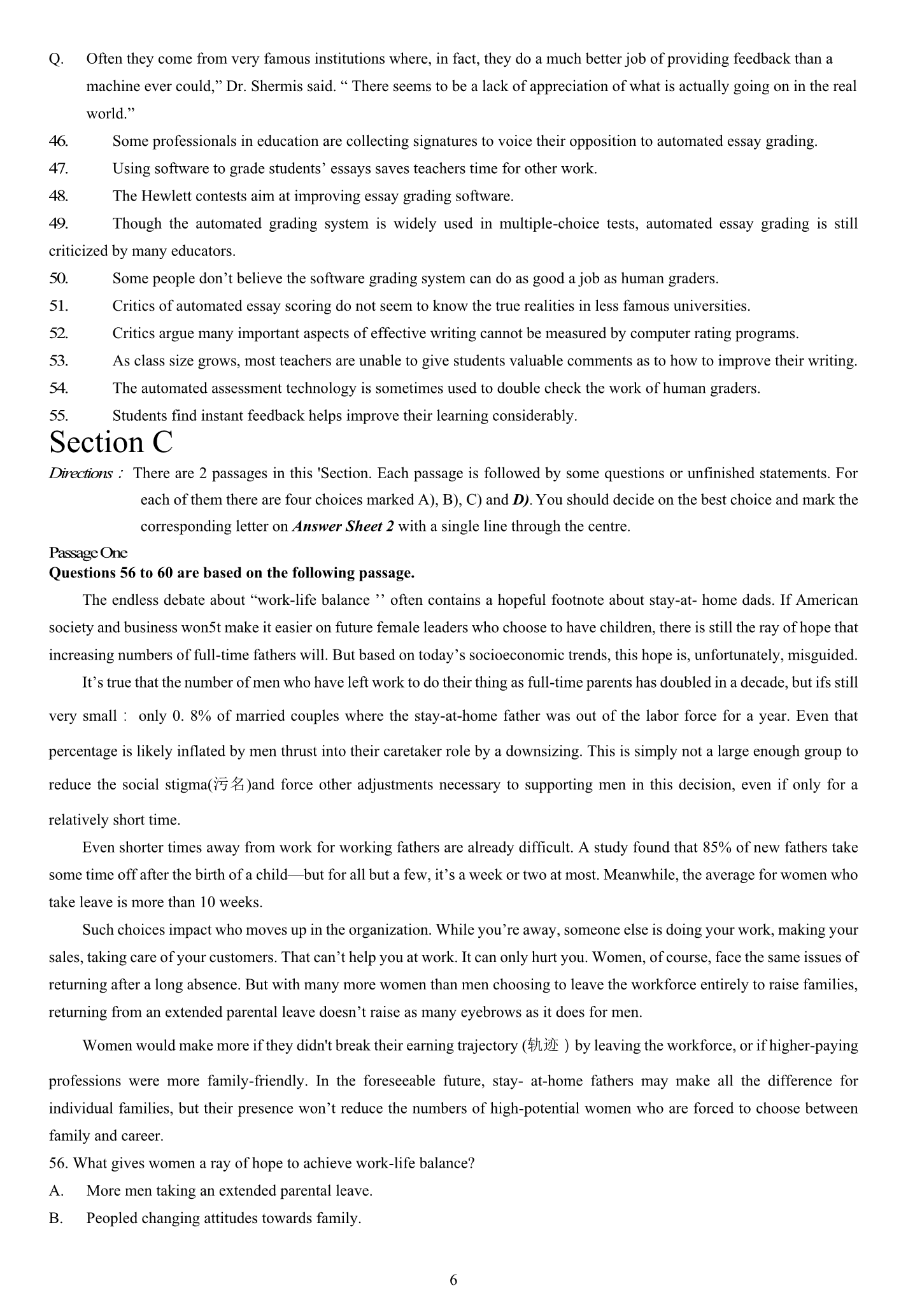 2015年6月大学英语四级真题(卷二)