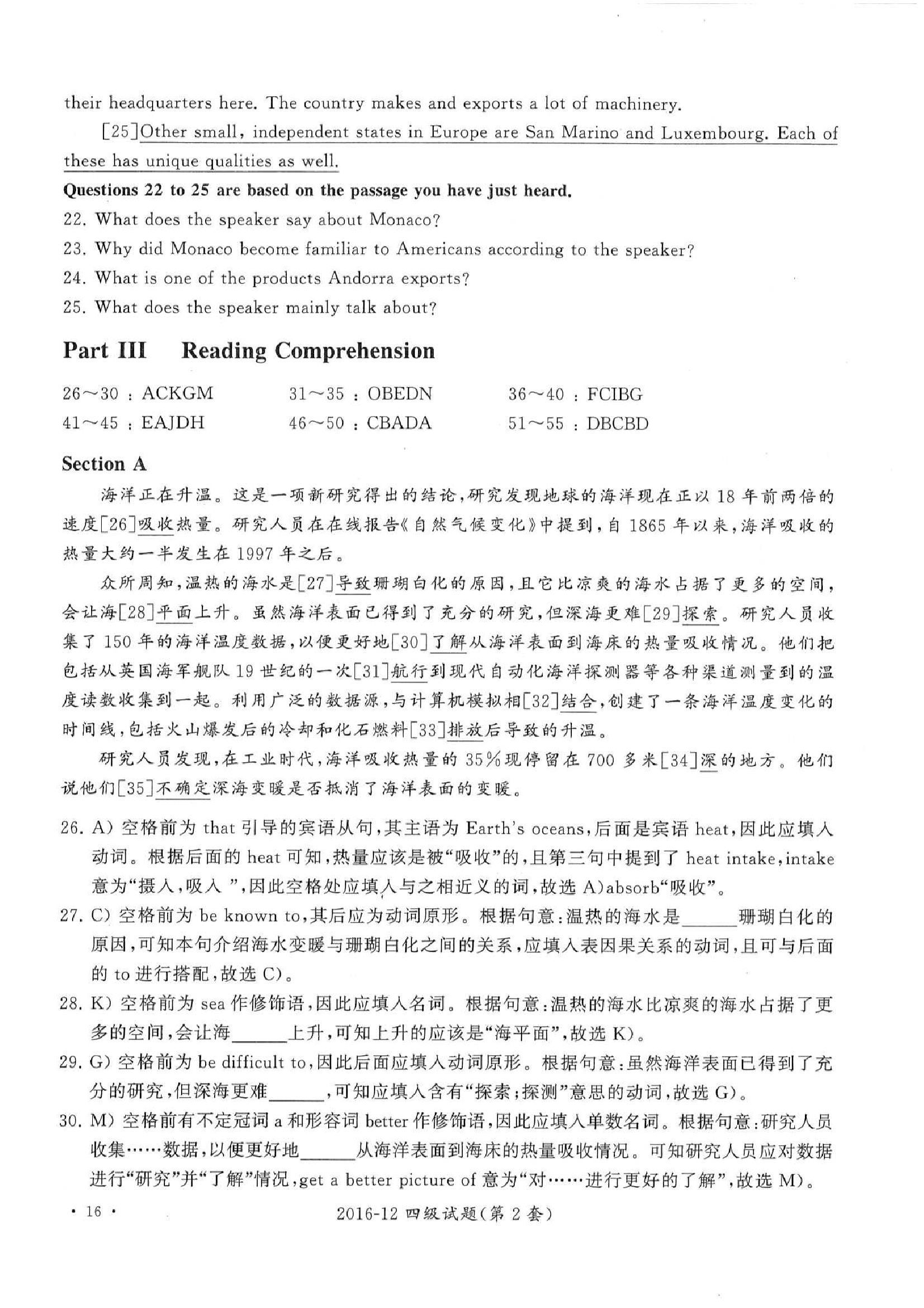 2016年12月大学英语四级真题答案解析(第2套)