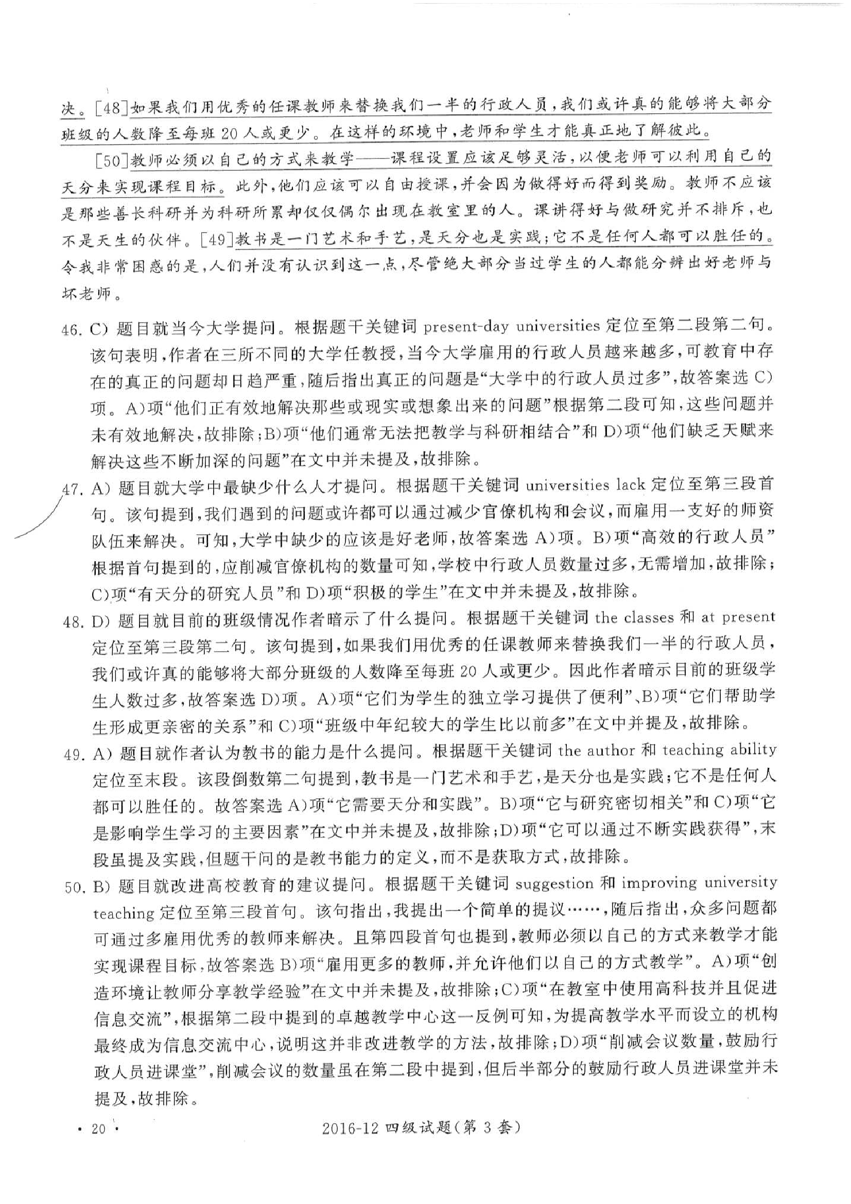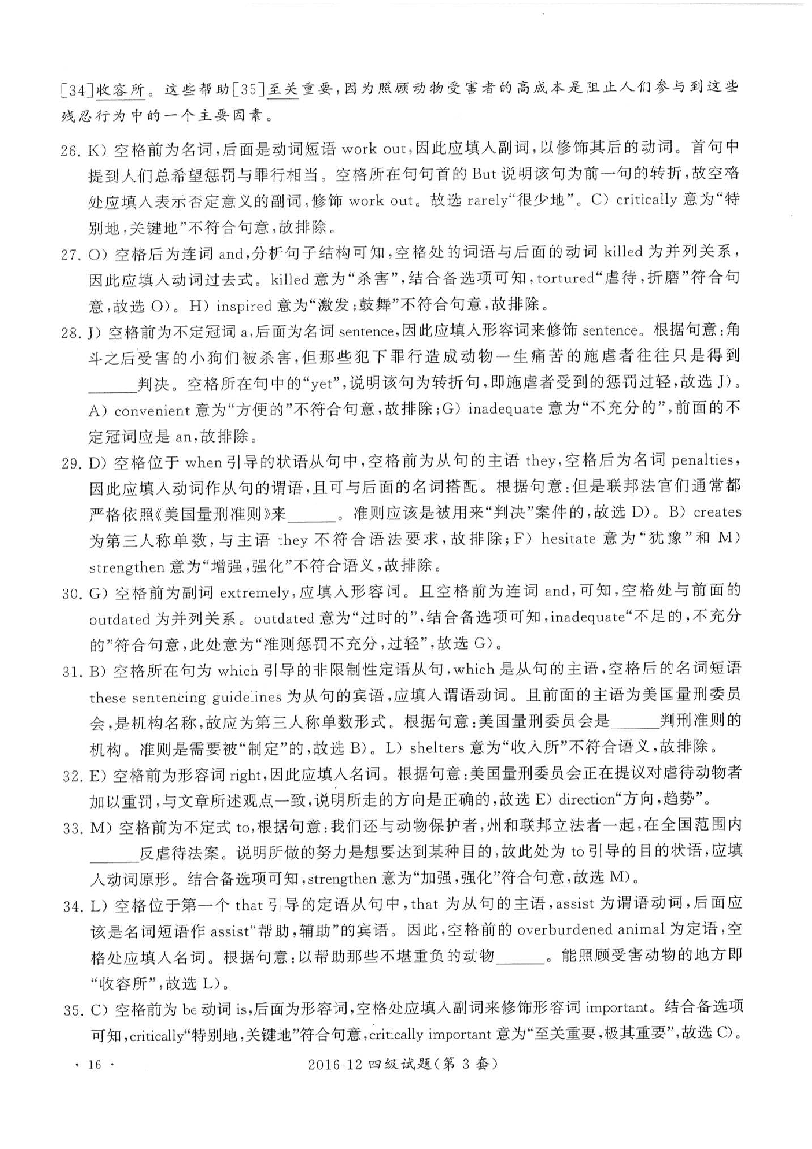 2016年12月大学英语四级真题答案解析(第3套)