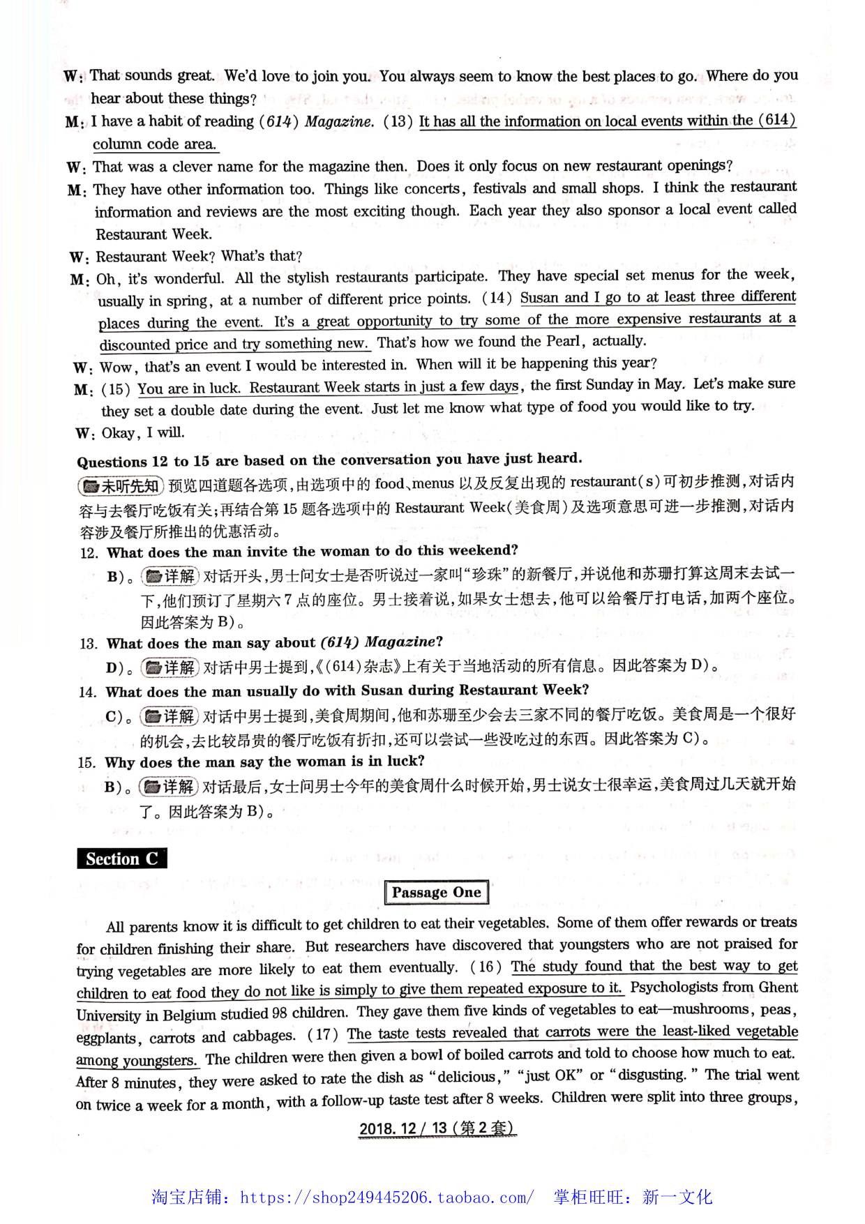 2018年12月英语四级真题答案解析(第二套)