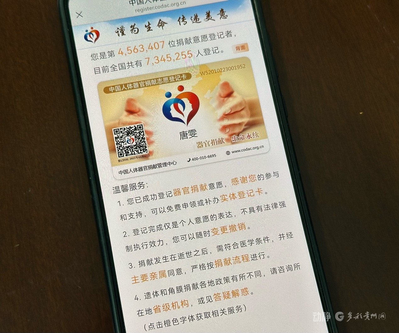 动静记者从贵州省人体器官与细胞组织捐献管理中心了解到:自2013年开展工作以来,贵州累计登记遗体和人体器官捐献志愿者已突破20万人,已完成公民逝世后器官捐献的有1258人,让3400余名器官衰竭患者重获新生。